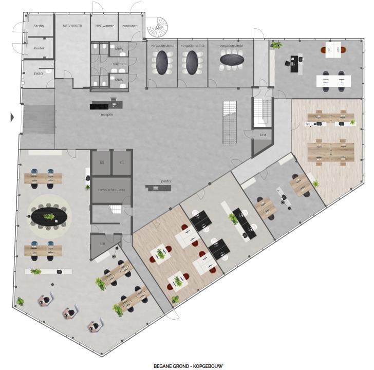 Het nieuwe multi-tenant gebouw vervult een verbindende rol voor bedrijven en studenten op het Leerpark. Een centraal atrium stimuleert ontmoetingen en verbindingen. Het atrium biedt ruimte voor flexwerken, ontmoeten en het vieren van successen. Ook zijn er vergaderfaciliteiten beschikbaar. Daarnaast bieden wij toegang tot een netwerk van bedrijven en organisaties op campussen door heel Nederland en Europa.