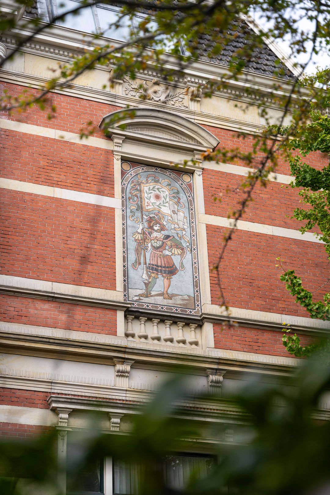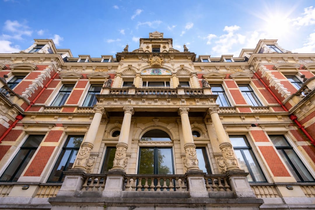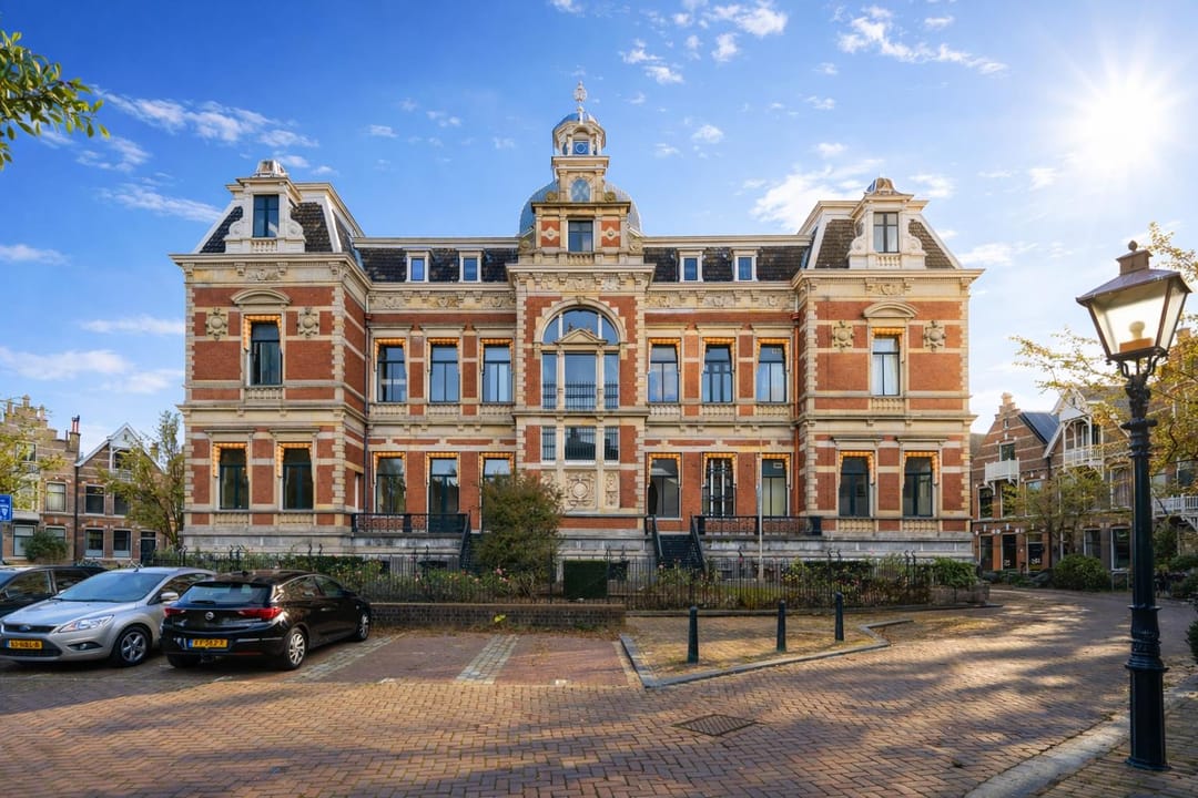 Het gebouw begon zijn leven als buitenplaats en werd later een villa voor wie wonen zag als meer dan alleen verblijven. Die geschiedenis is nog altijd zichtbaar in de schaal, de symmetrie en de detaillering. Rode baksteen, zandstenen lijsten, vooruitspringende geveldelen en een koepeltoren geven het pand een duidelijke architectonische aanwezigheid.