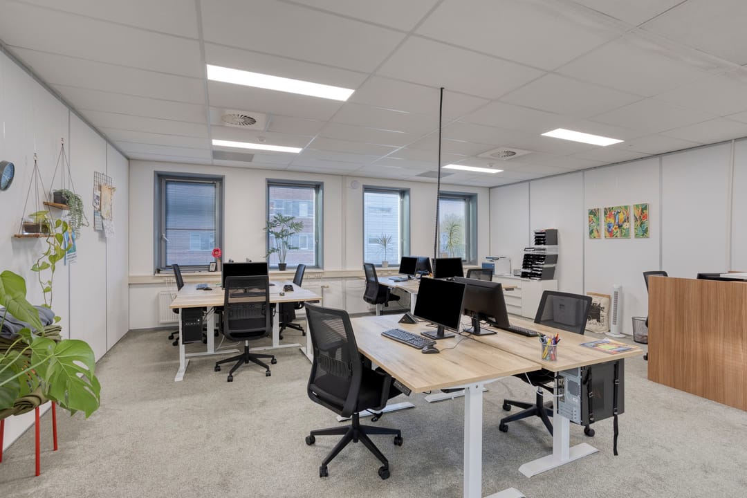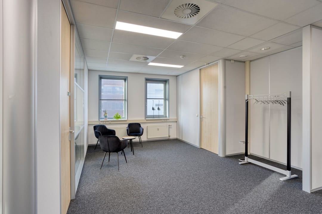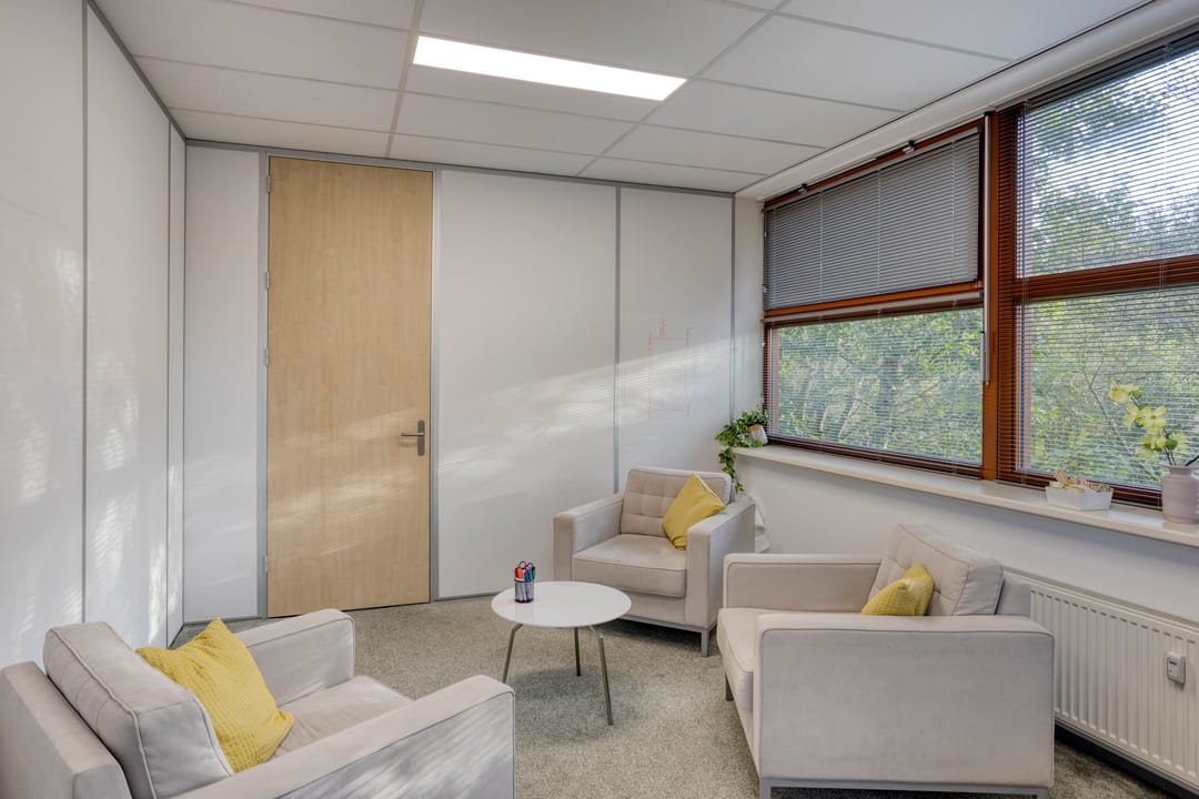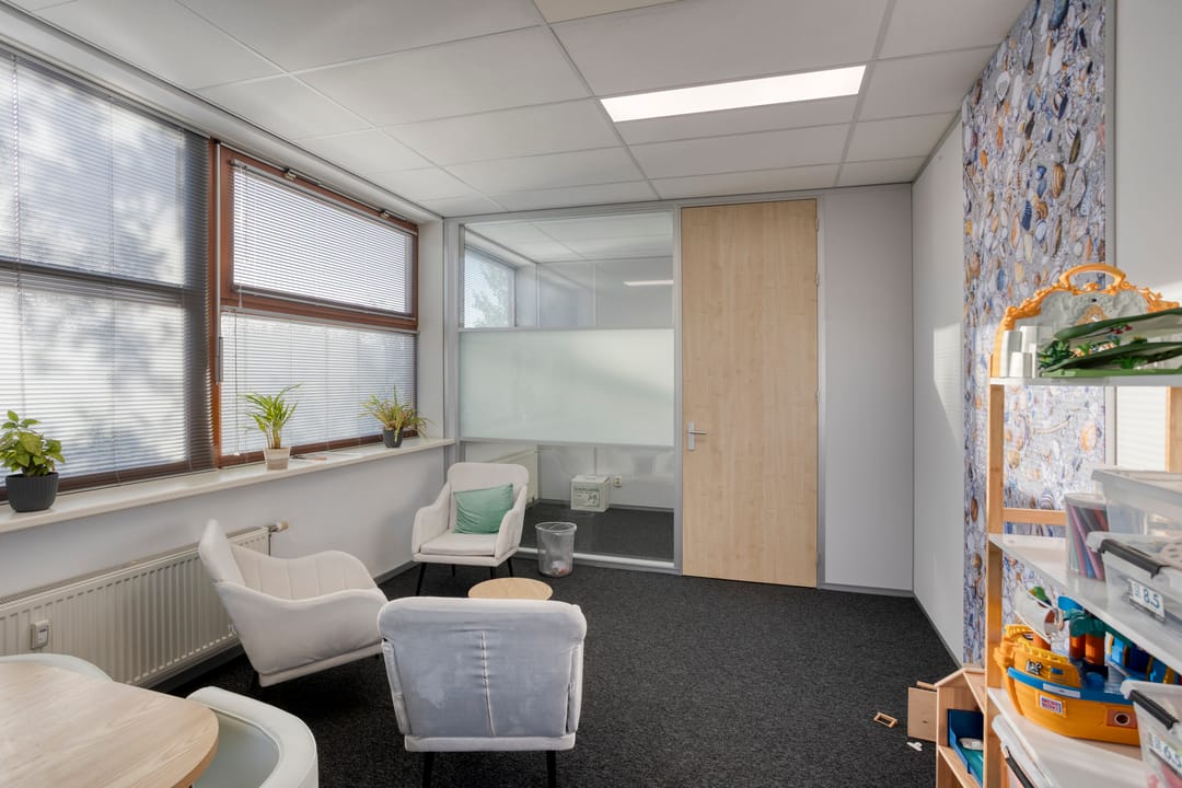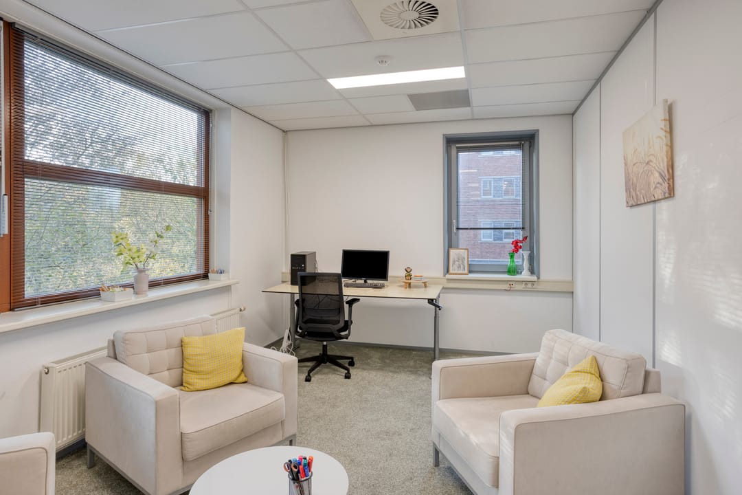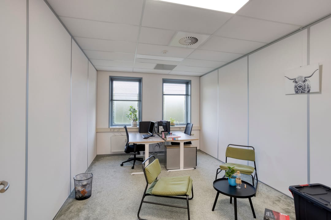 Momenteel zijn de kantoorruimten op de begane grond, eerste en tweede verdieping tezamen beschikbaar voor verhuur.