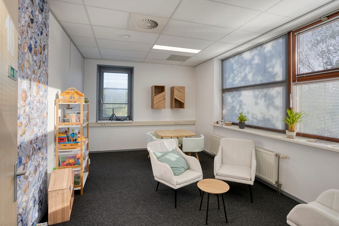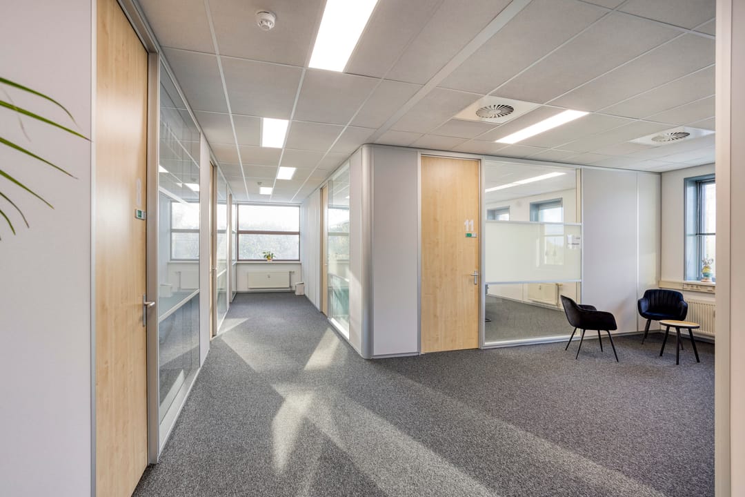 - Mechanical ventilation, peak cooling, built-in fittings, elevators, windows can be opened, cable ducts, modular ceiling, toilet, pantry, heating and room layout
