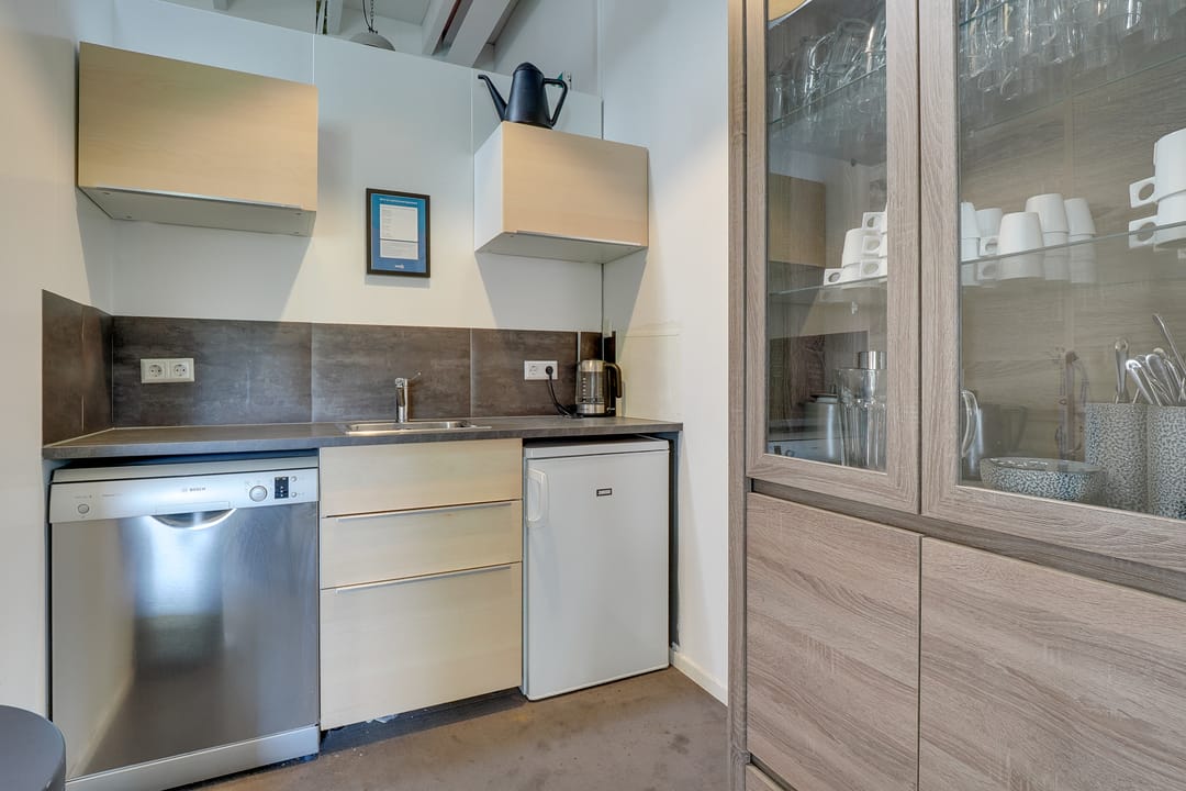 - pantry in het gehuurde met warm- en koudwater voorzien van o.a. een afwasmachine en ijskast;