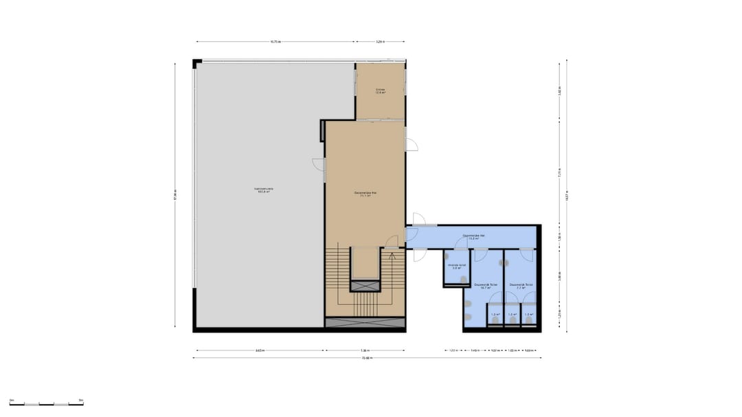 - twee kantoorruimtes op de eerste verdieping ter grootte van circa 310 m², respectievelijk circa 353 m².
