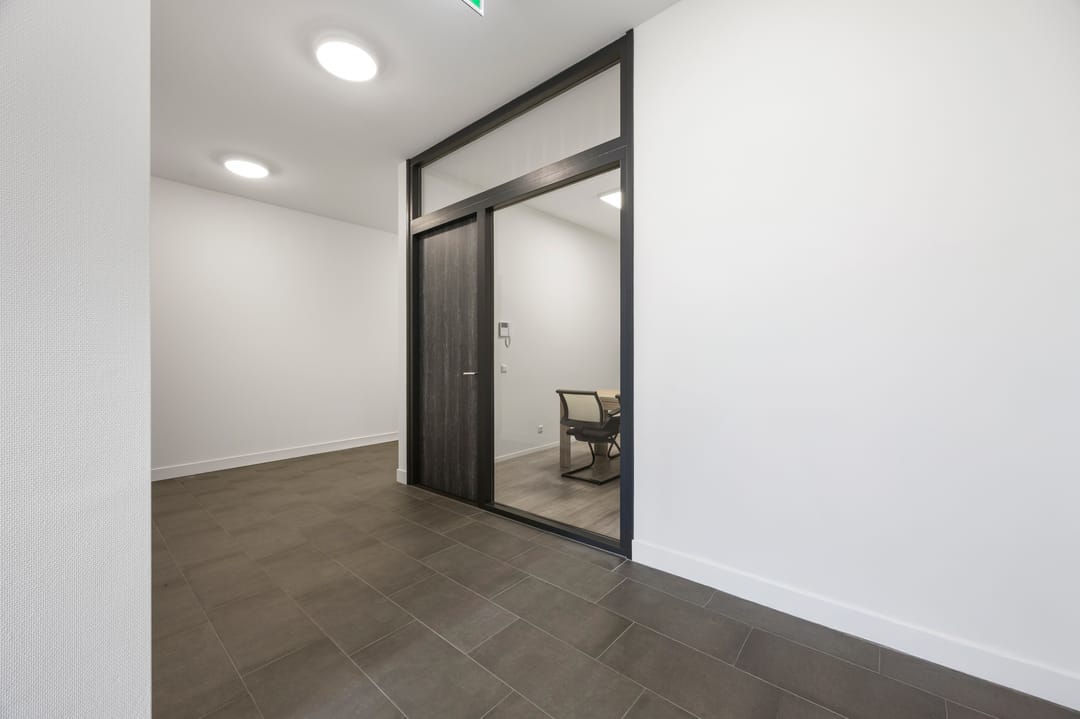 De kantoorruimte is voorzien van een luxe houtlook PVC-vloer.