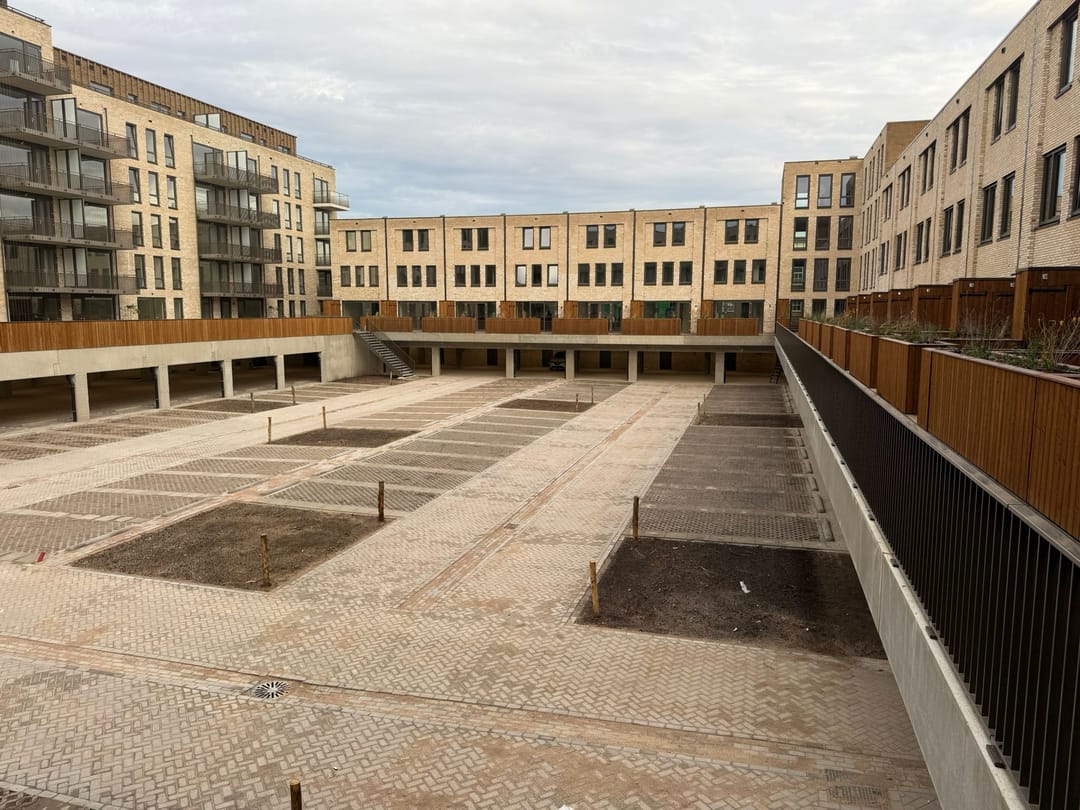 Naast het pand wordt momenteel een stadspark aangelegd. Hoogteverschillen, zitmogelijkheden, bomen en perken. Geheel onder architectuur ontstaat er momenteel een fantastisch park.