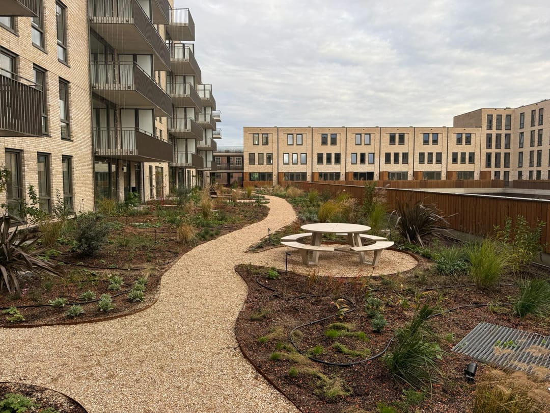Huurder heeft toegang tot de daktuin van het appartementencomplex. Hier staan picknicktafels en kan men bijvoorbeeld in de zomer even rustig zitten om te lunchen.
