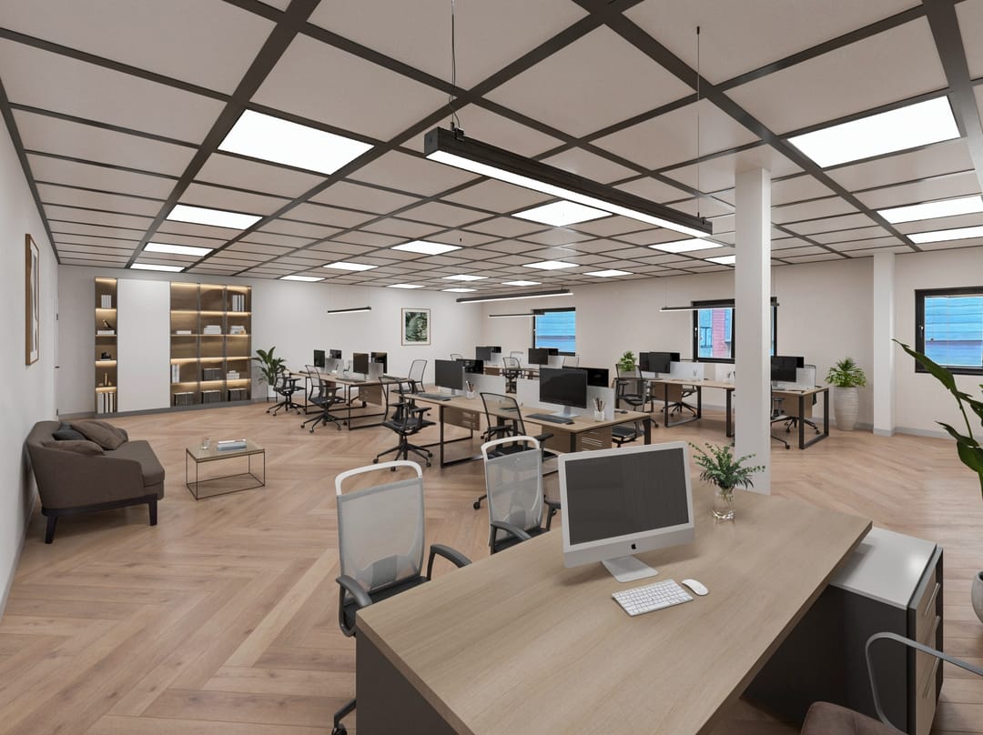- Mechanical ventilation, built-in fittings, elevators, cable ducts, modular ceiling, toilet, pantry and heating