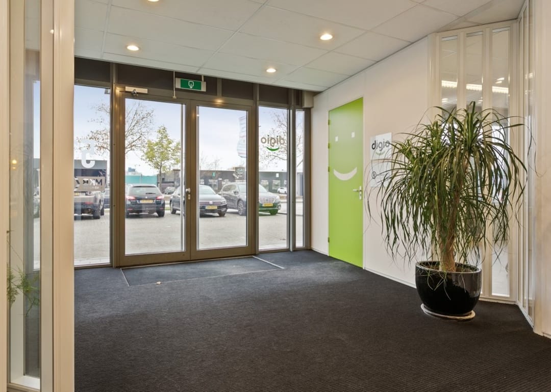 Het verzorgde kantoorgebouw gelegen op een zichtlocatie aan de verkeersader de Meerenakkerweg van het bedrijventerrein “De Hurk”. Het kantoorgebouw heeft een professionele uitstraling. Deze professionele uitstraling zet zich ook door binnen het kantoorgebouw. Via de centrale entree is de gezamenlijke ruimte op de eerste verdieping te betreden. De gezamenlijke ruimte is toegankelijk voor alle huurders en beschikt over een vergadertafel, pantry en toiletgroepen.