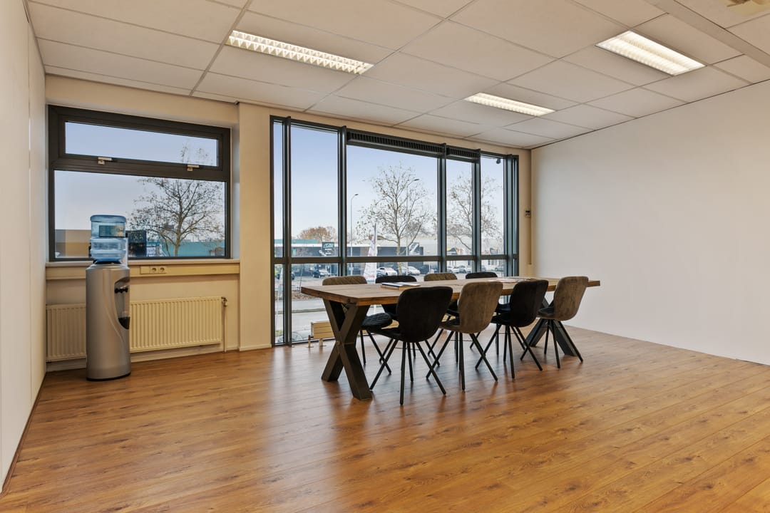 Vergadertafel, pantry en toiletten zijn voor gezamenlijk gebruik.