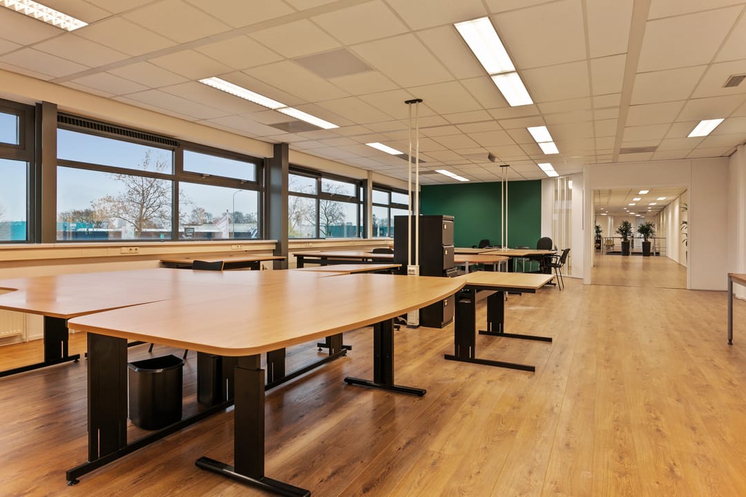 De kantoorruimtes zijn voorzien van een ingebouwde airco-unit en een systeemplafond met ingebouwde lichtarmaturen.