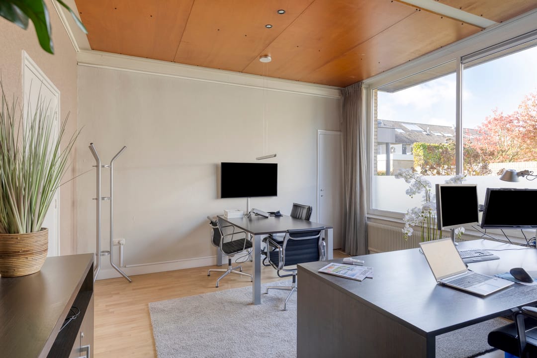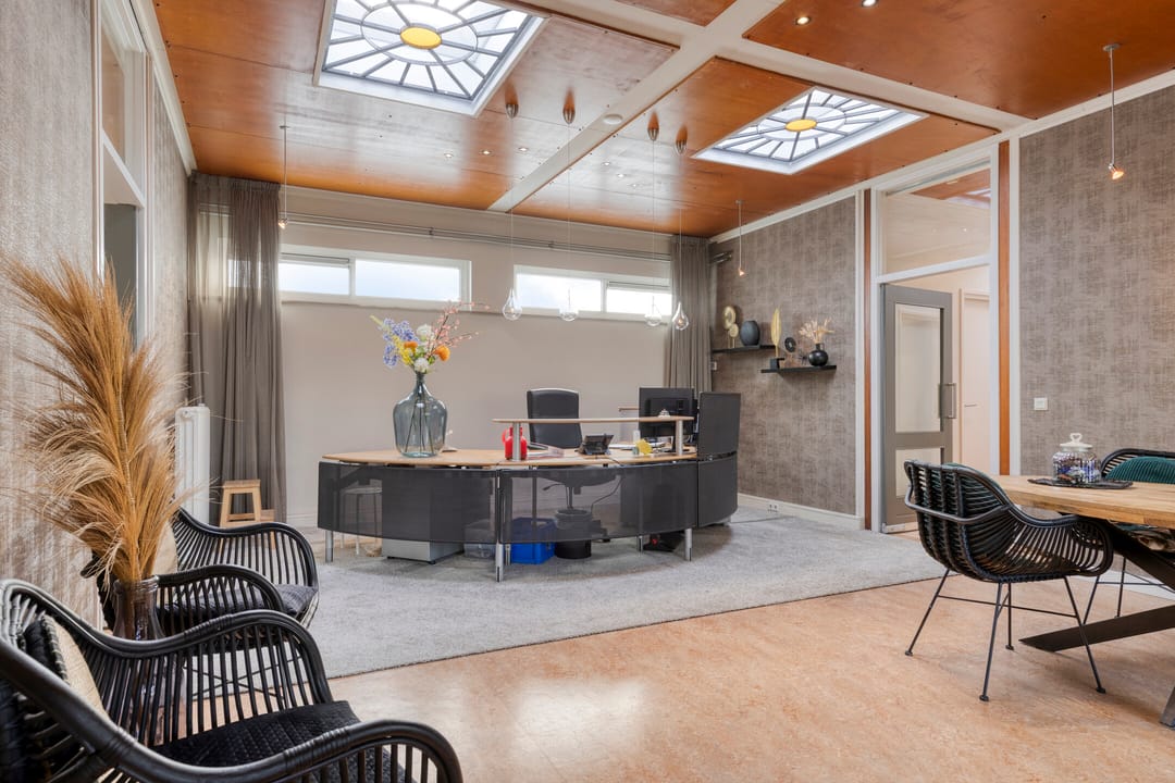 The building comprises several office and meeting rooms of various sizes, allowing for flexible layout and use options. Thanks to the large windows at the front and skylights in the ceiling, almost every room benefits from a pleasant amount of natural light.