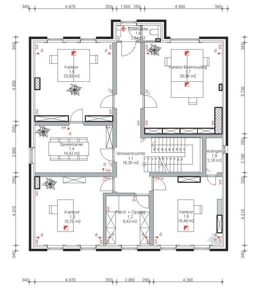 • vaste aansluitpunten ten behoeve van data en elektra *