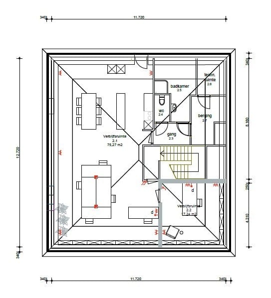 Circa 295 m² totaal - verdeeld over 2 bouwlagen - onderverdeeld in: