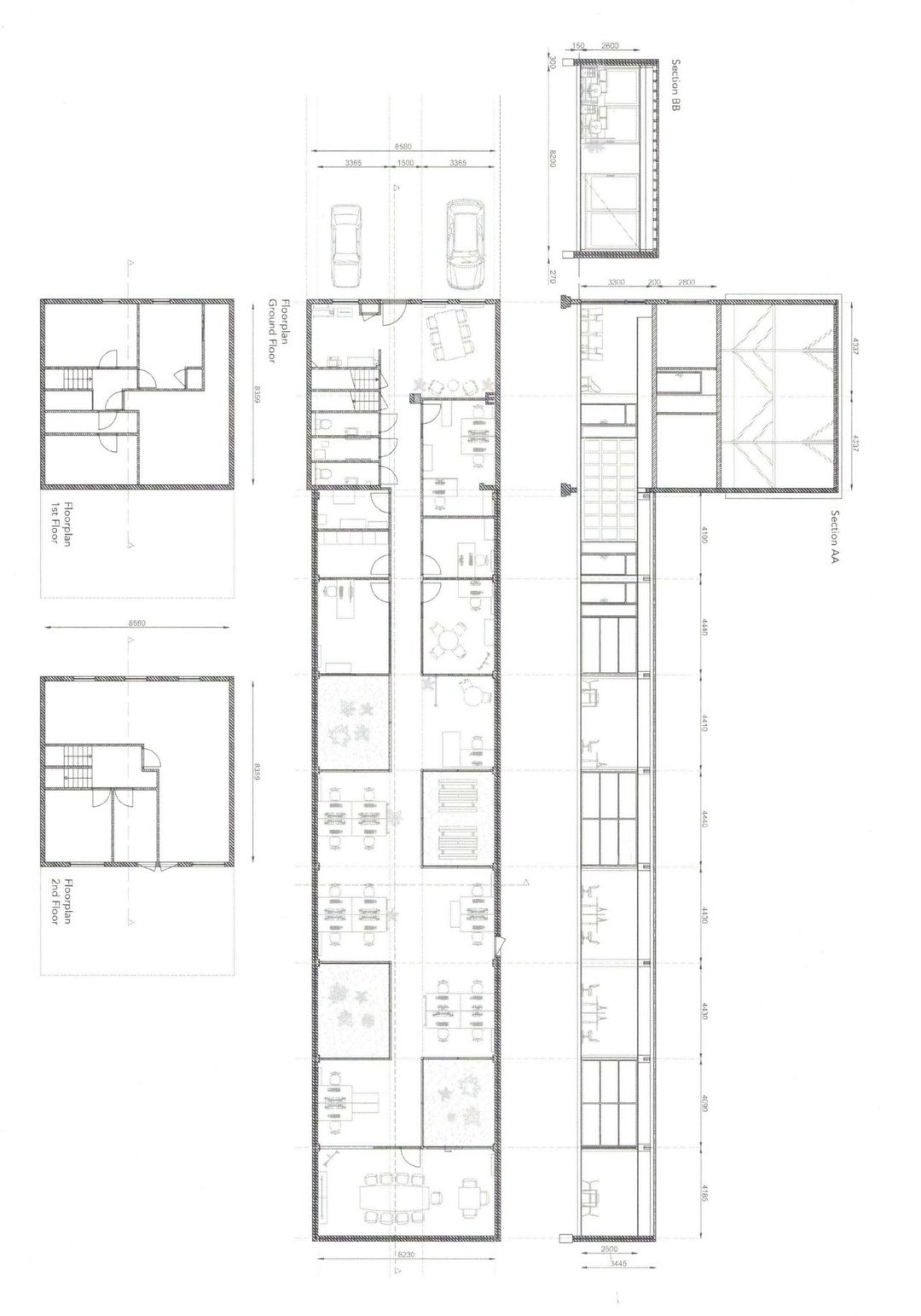 Circa 430 m² totaal - verdeeld over 3 bouwlagen - onderverdeeld in: