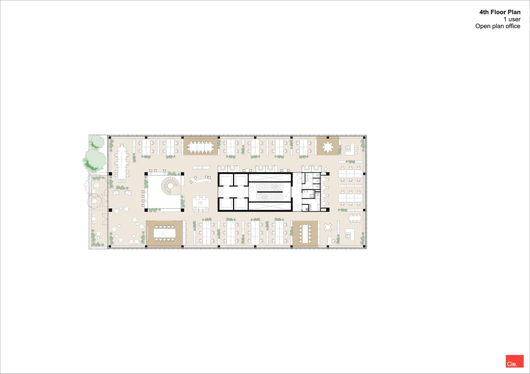 The RED is ontworpen als stimulerende werkomgeving: open, licht, groen en flexibel. Hoge plafonds en veel daglicht zorgen voor een ruimtelijke en inspirerende sfeer. Of je nu geconcentreerd alleen werkt of interactie zoekt met collega’s: het gebouw faciliteert beide.