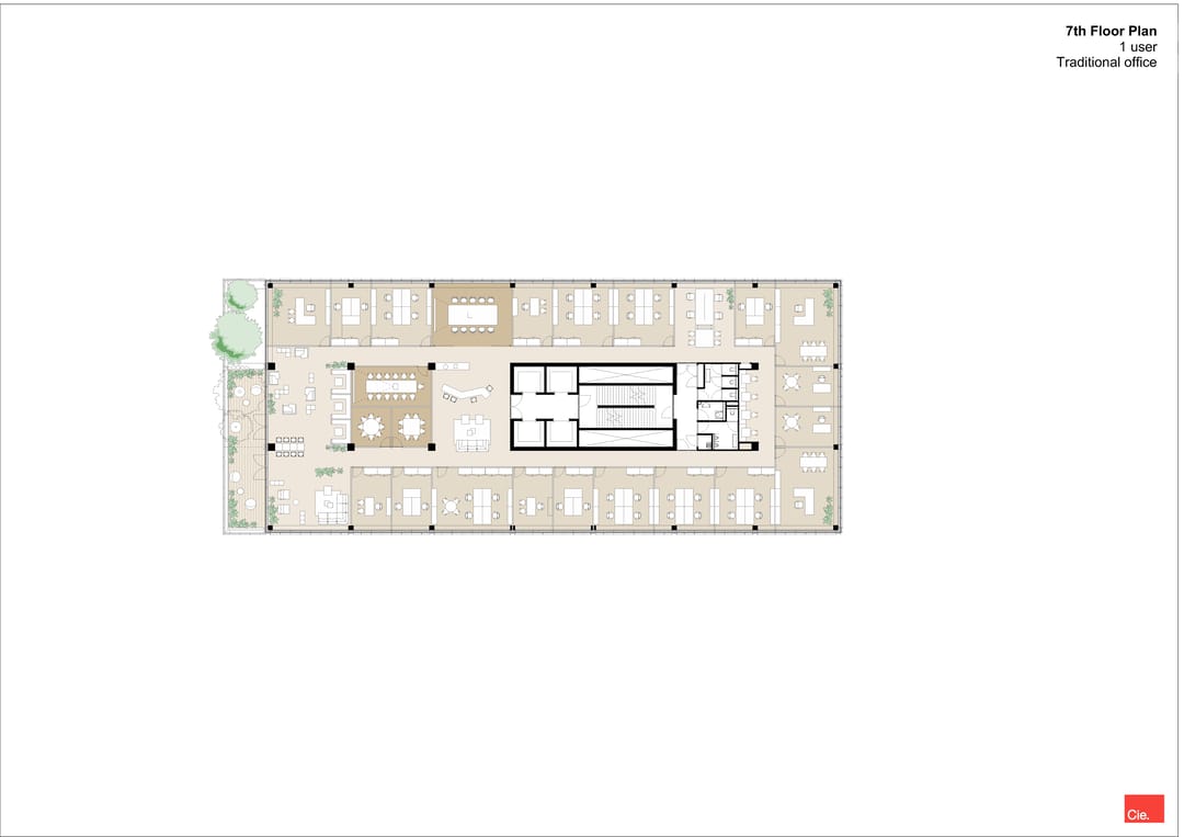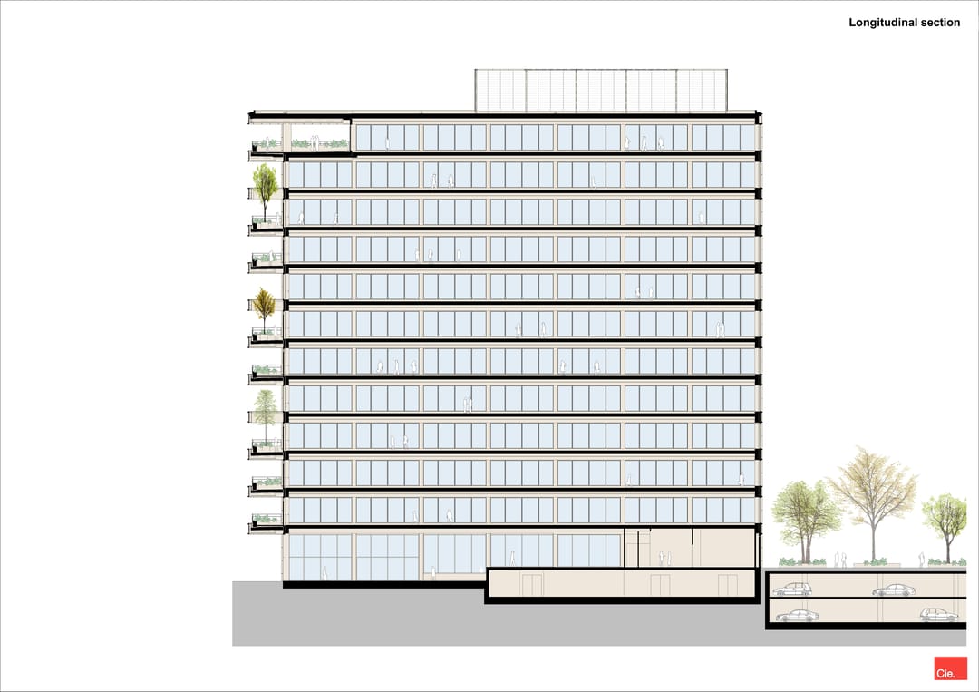 Verdeeld over 12 bouwlagen (inclusief -1) biedt het gebouw ruim 12.500 m² v.v.o. aan hoogwaardige, flexibel indeelbare kantoorruimte en commerciële ruimte.