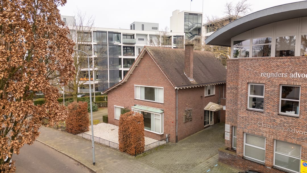 Deze representatieve kantoor-/woonvilla bevindt zich in het exclusieve villapark Den Elzent, een karakteristieke wijk die is aangewezen als Beschermd Stadsgezicht. De ligging is ideaal: op loopafstand van het centrum van Eindhoven en direct naast het moderne kantoorgebouw van Claassen Advocaten. Dankzij deze centrale positie is de bereikbaarheid uitstekend, zowel met de auto als met het openbaar vervoer.