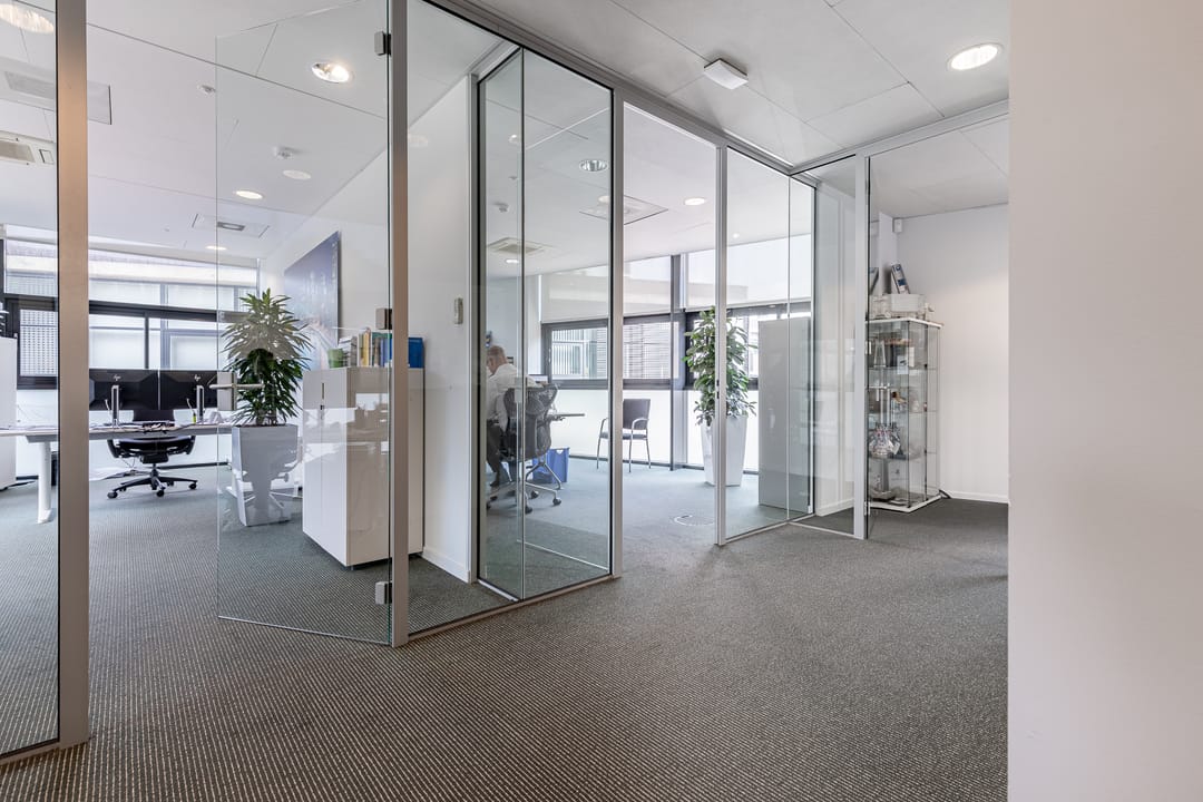 • huidige kamerindeling middels glazen systeemwanden