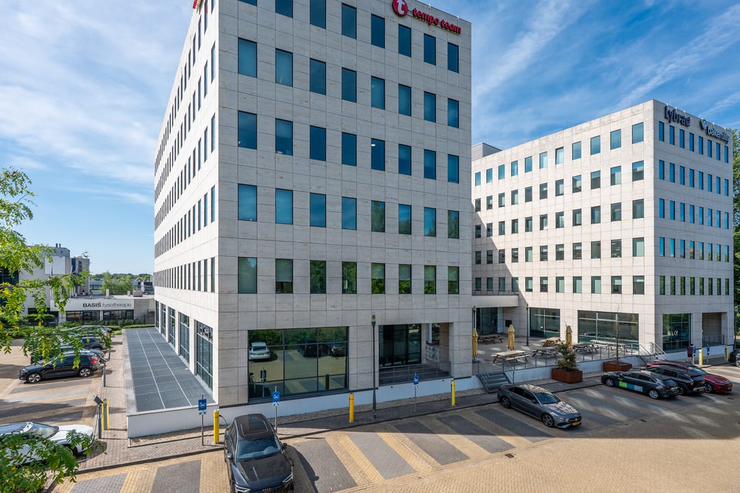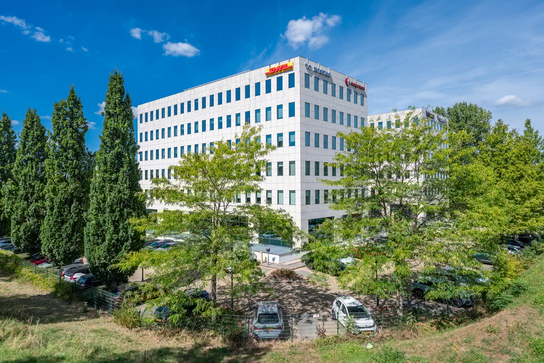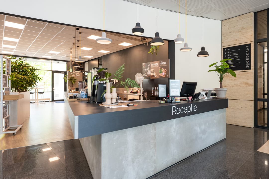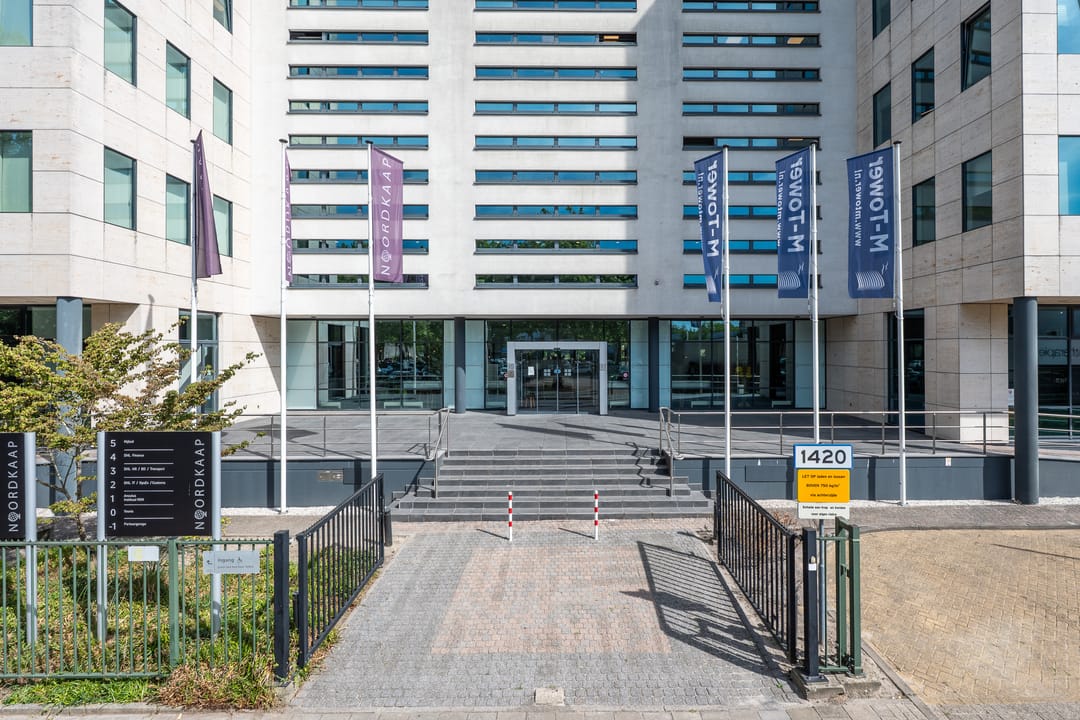 The office complex "Noordkaap" consists of approx. 8,300 sq. m. of office space, divided across three building sections and six floors. The building is located in a highly visible location and houses various tenants - ranging from coworking spaces to complete floor plates, which creates a pleasant dynamic. On the ground floor, there is a cozy lunch room and the complex features multiple shared meeting rooms for all users. Additionally, there is an outdoor terrace where users can relax and hold meetings in the open air.