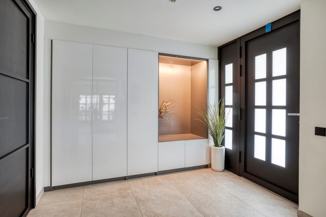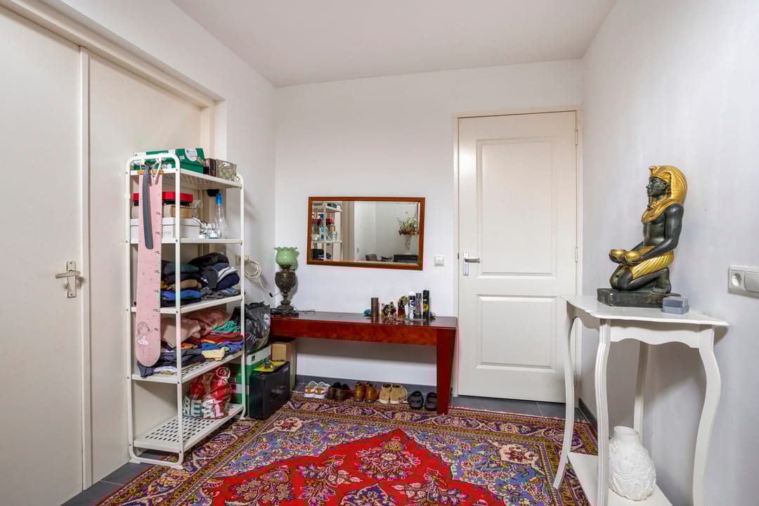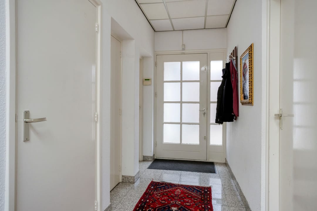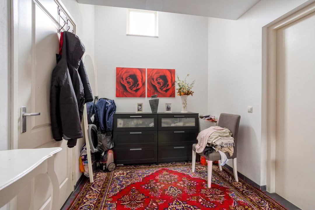 Via de entree komt u binnen in de hal van de woning. In de hal bevinden zich de meterkast (2021), het toilet, welke beschikt over een wandcloset en een fonteintje, inbouwkast voor de garderobe en een wasruimte, welke is voorzien van de aansluiting van de wasmachine en inbouwkast. Daarnaast vindt u in de hal ook de trapopgang welke toegang geeft tot de eerste verdieping van de woning.