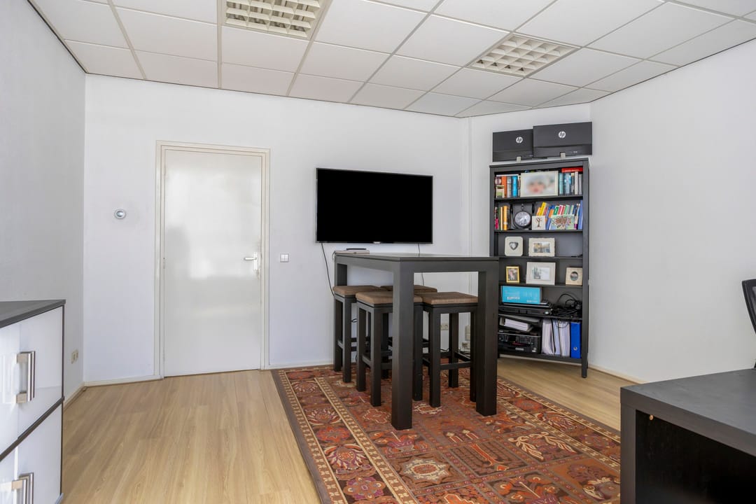 Het woongedeelte geniet dankzij grote raampartijen aan de voorzijde van de woning en twee toegangsdeuren naar de tuin aan de achterzijde van veel daglicht. De gehele begane grond is voorzien van een tegelvloer met vloerverwarming en kan verkoeld worden door middel van een airco. Vanuit het woongedeelte heeft u toegang tot de eerste slaapkamer van de woning, welke is gelegen aan de voorzijde van de woning. Deze slaapkamer is voorzien van veel daglicht en is ook een ideale ruimte voor een kantoor.