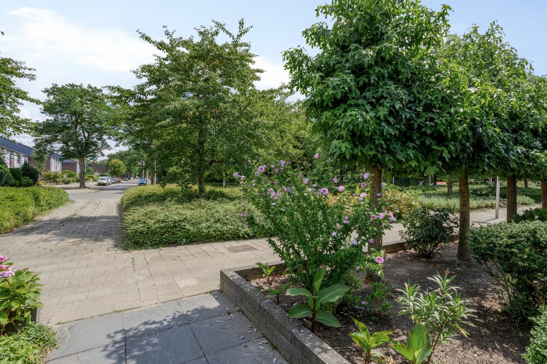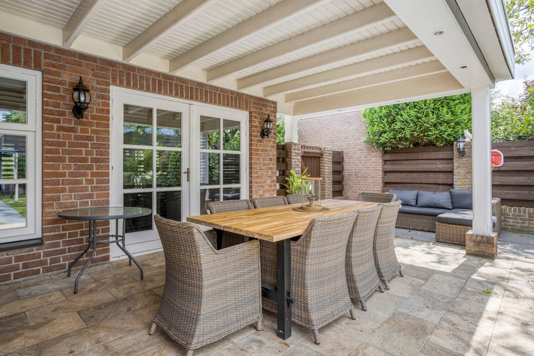 De fraai aangelegde tuin is voorzien van een terras met overkapping, groen gazon, een eigen achterom en een schuurtje. Het schuurtje is voorzien van elektra en beschikt over vloerverwarming.