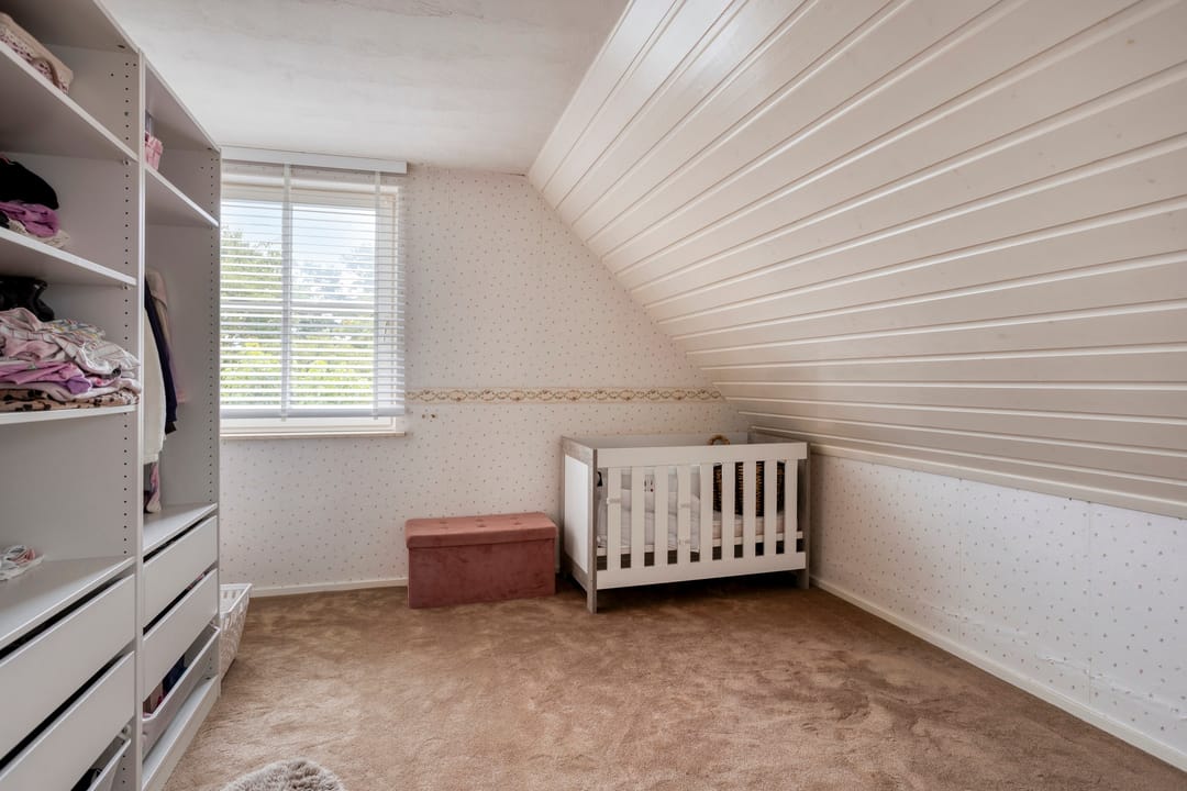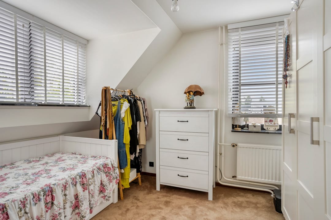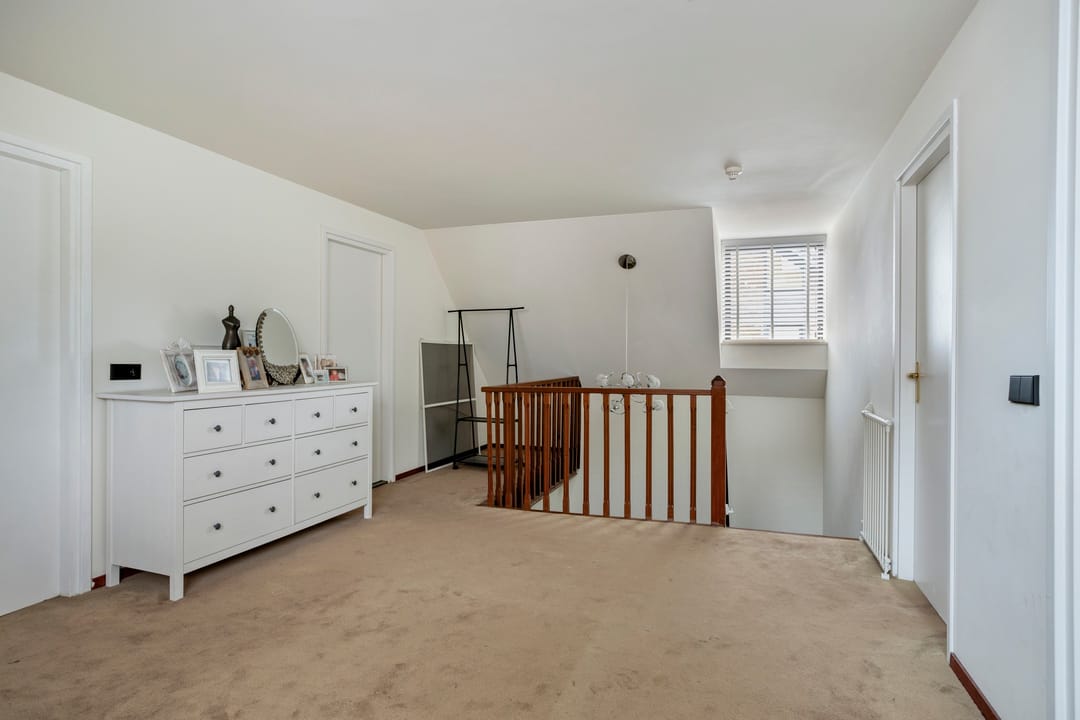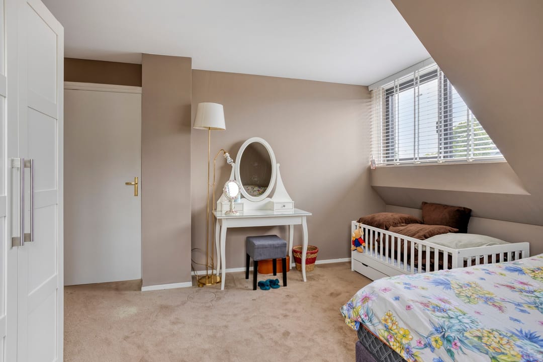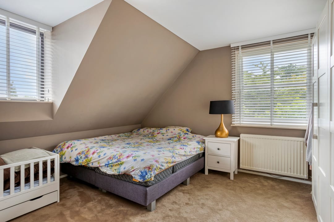 Door middel van een vaste trap in de hal bereikt u de eerste verdieping van de woning. De gehele verdieping is voorzien van vloerbedekking, met uitzondering van de badkamer en is uitgebouwd met vier dakkapellen. Op de eerste verdieping bevinden zich drie slaapkamers: één aan de achterzijde, de master bedroom welke is gelegen aan de voorzijde en nog een slaapkamer aan de voorzijde. Alle slaapkamers zijn voorzien van veel daglicht door middel van grote raampartijen.