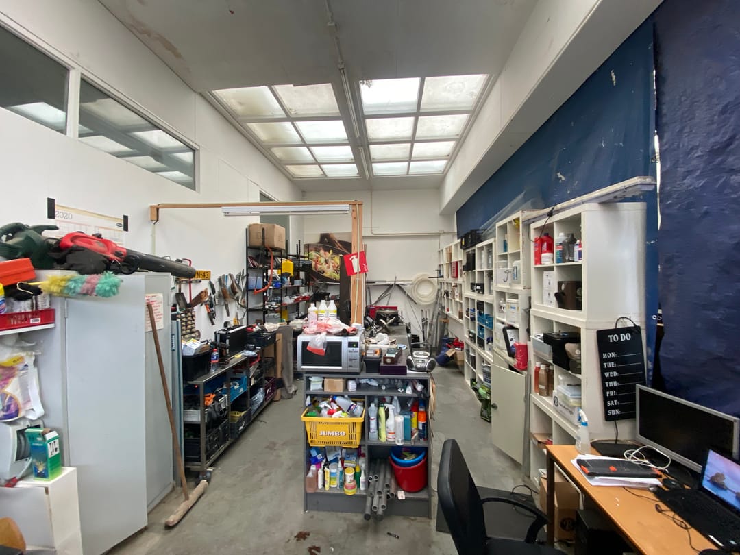 Bedrijfsruimte: entree middels overheaddeur, bedrijfsruimte, kantoor en toiletgroep.