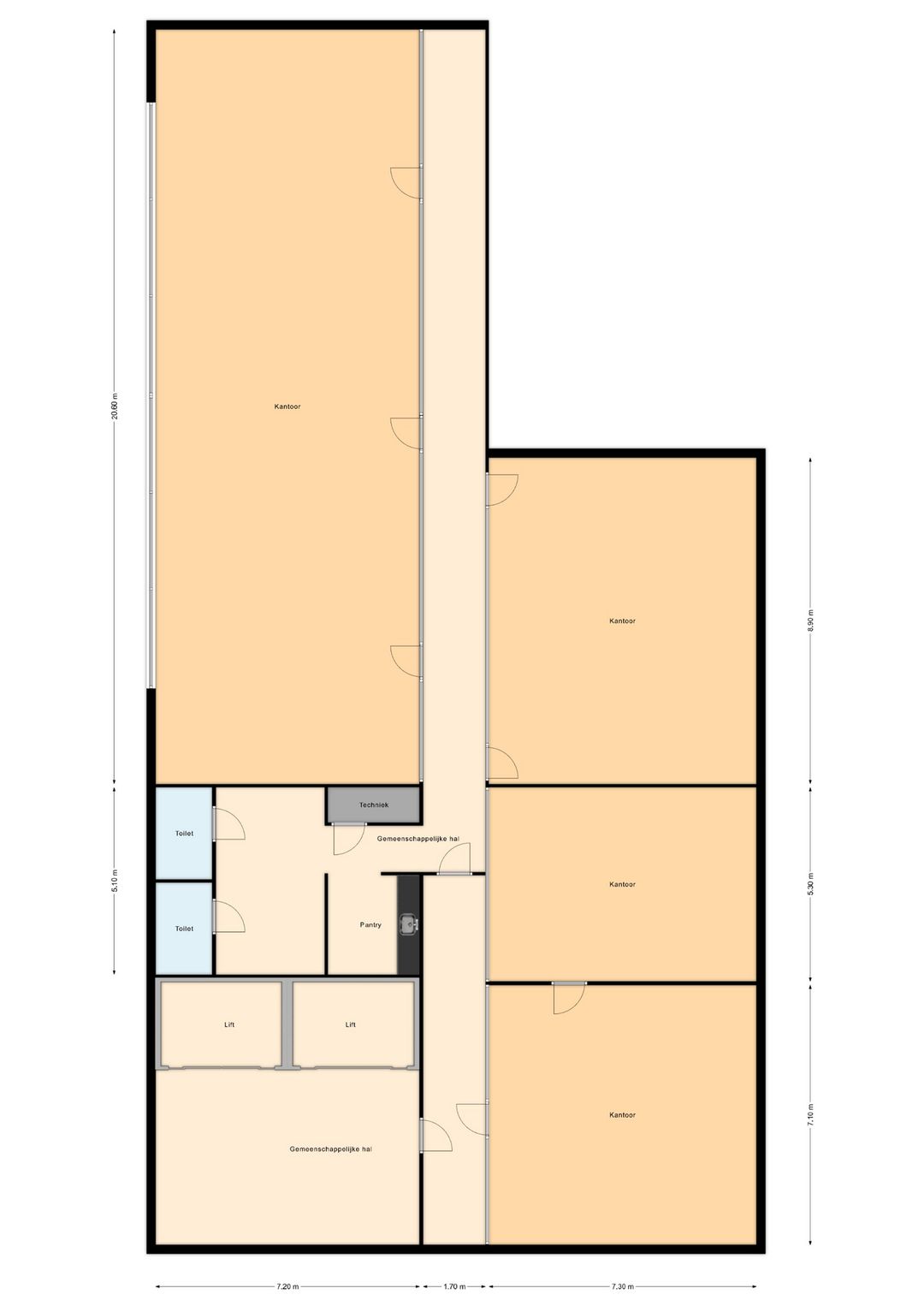 Gemeenschappelijk hal naar de vier kantoorruimtes.