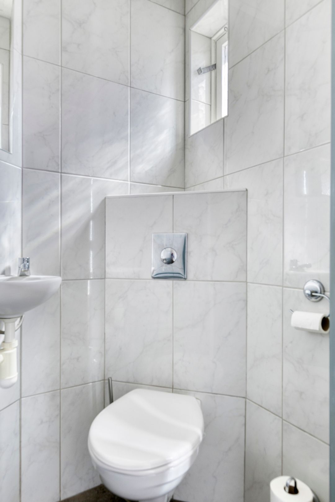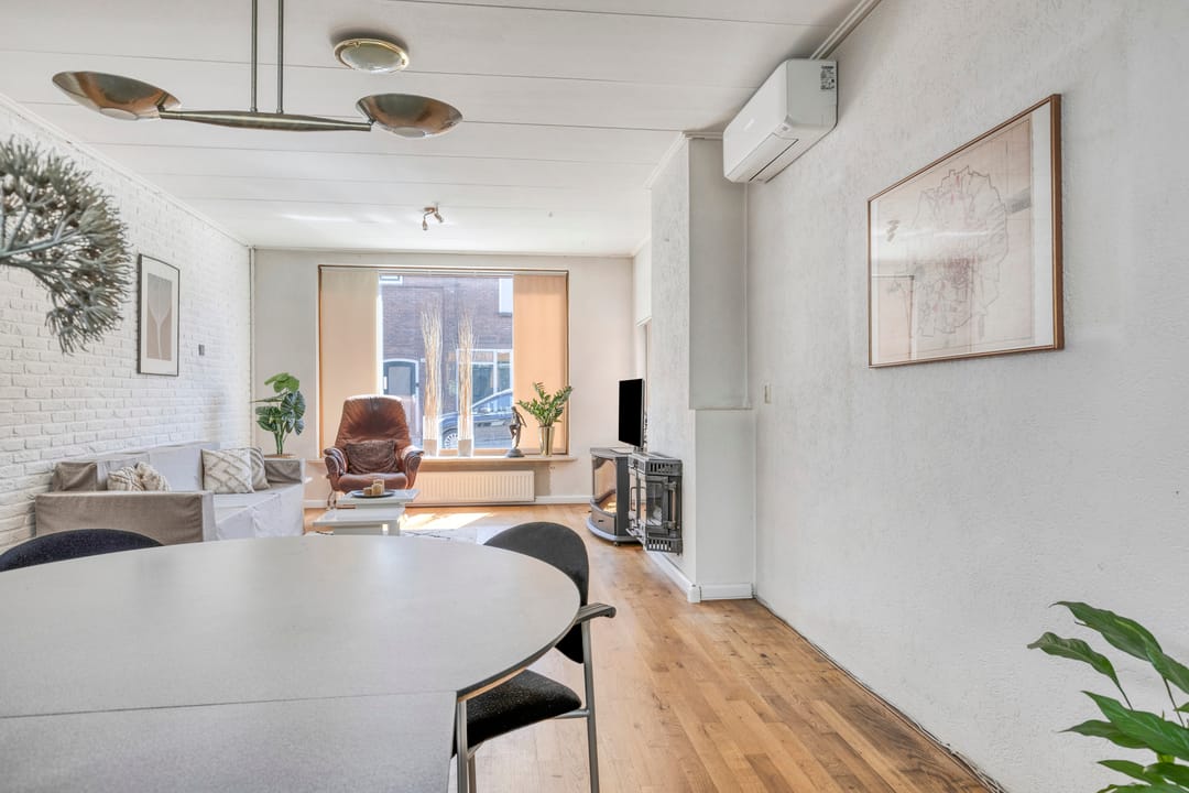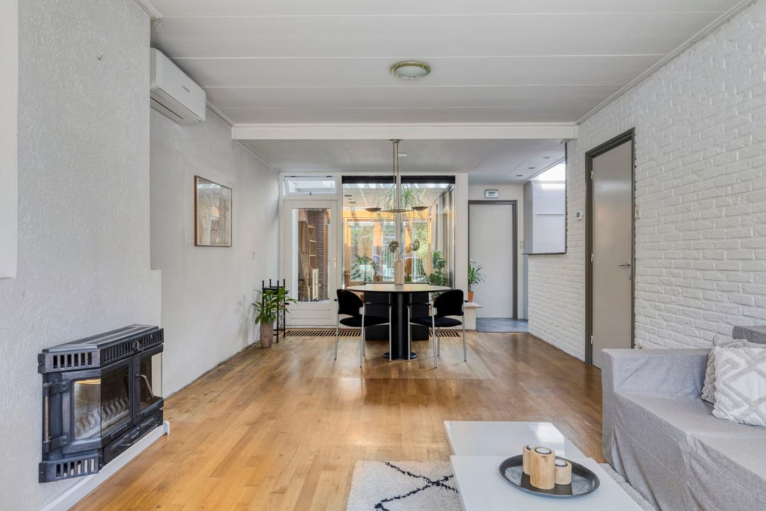 Bij binnenkomst via de entree vind je de hal met trapopgang, kelderruimte en een toiletruimte met toilet en fontein. Vanuit de hal bereik je de ruime woonkamer met parketvloer, airconditioning en een sfeervolle inzethaard. De moderne U-vormige keuken is voorzien van een vaatwasser, inductiekookplaat, koelkast, afzuigkap, composiet werkblad en veel bergruimte. Dankzij de grote lichtkoepel geniet je hier van veel natuurlijk licht.