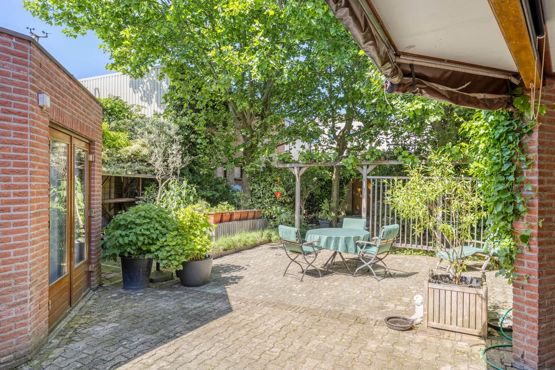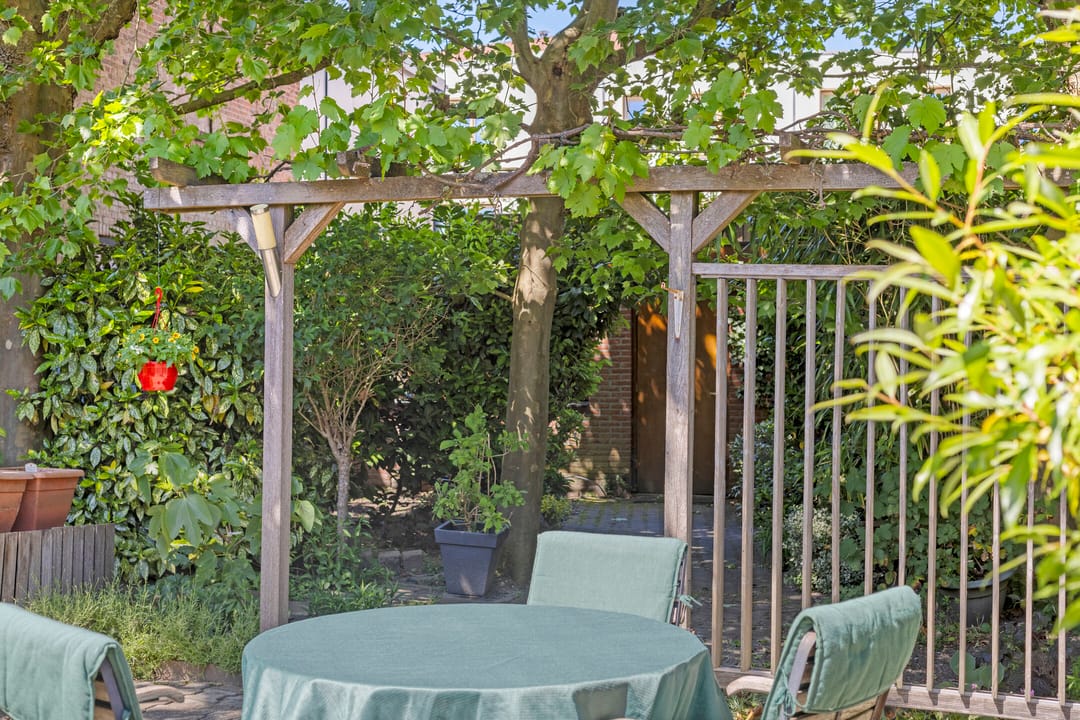 Het huis staat op een royale kavel van 400 m². In de tuin bieden de bomen vanaf het voorjaar voldoende privacy. Zelfs de nieuwbouwappartementen aan de achterzijde worden door het groen aan het zicht onttrokken, waardoor je je in een afgelegen omgeving waant.