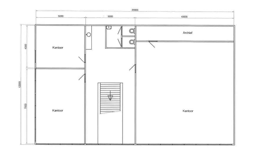 De totale ruimte op de eerste verdieping is circa 200 m2 groot. Op de begane grond is er de centrale entree (tezamen met de huurder op de begane grond) met trapopgang. Op de eerste verdieping vindt u een pantry, twee separate toiletten, 3 x kantoorruimte, bergruimte/archief en een overloop.