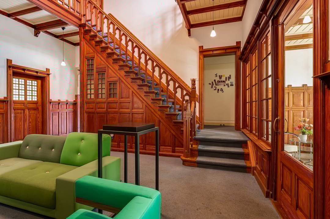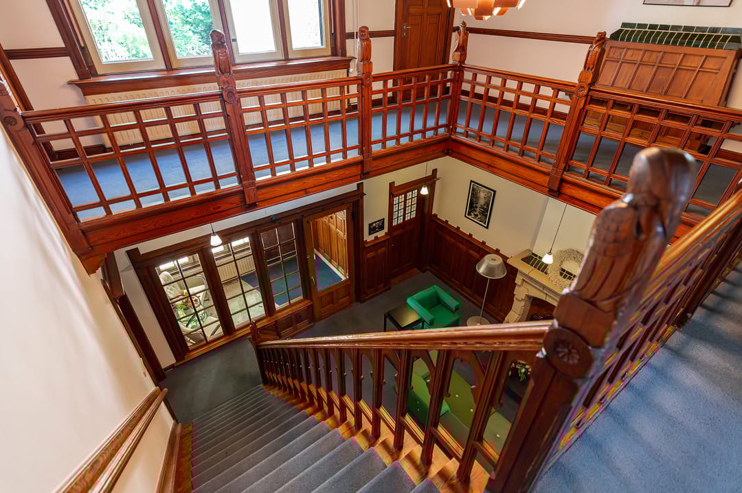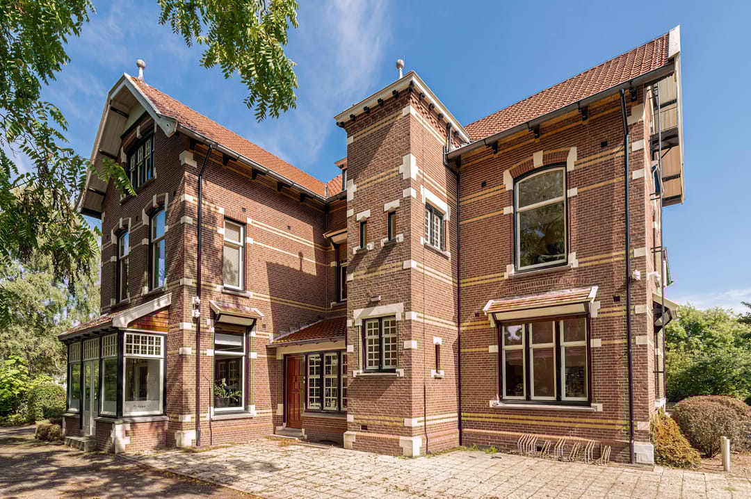 Stap binnen in Bottesteyn, een opvallende villa uit 1903 met een rijk gedetailleerde gevelpartij, karakteristieke dakvormen en goed bewaarde interieurelementen. De architectuur toont invloeden van de Neo-Renaissance en Chalet-/Art Nouveau-details, waardoor de villa een warme, herkenbare uitstraling heeft die zich perfect leent voor een stijlvolle kantoorruimte.