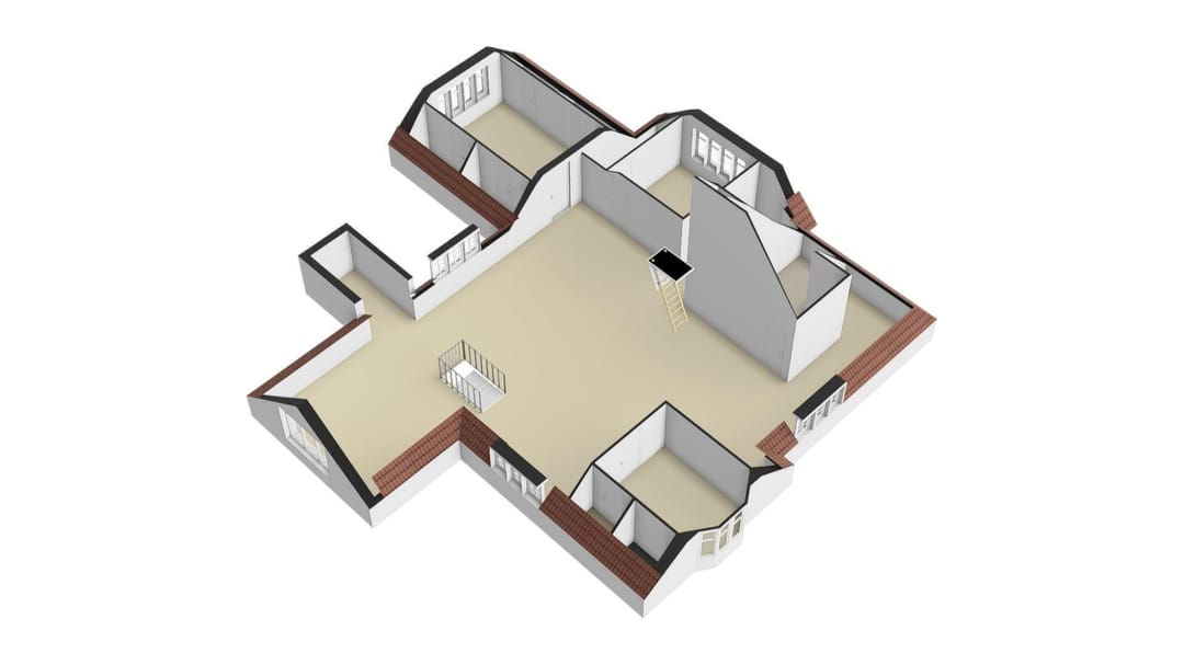 De zolder is een open ruimte met een 3-tal afzonderlijke afsluitbare dienstruimtes en een technische ruimte.