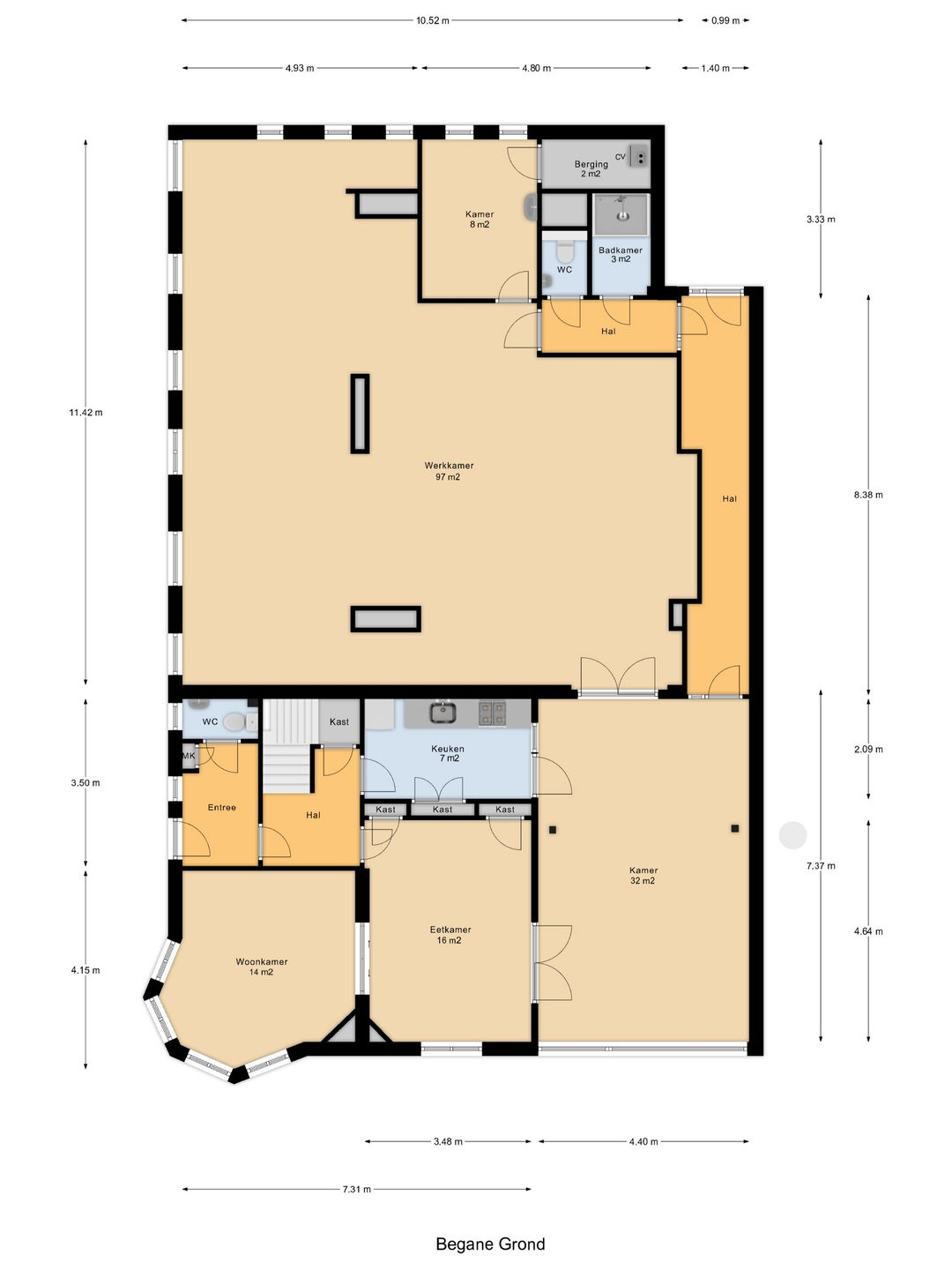 - Isolerende beglazing (begane grond) en enkele beglazing (verdieping);
