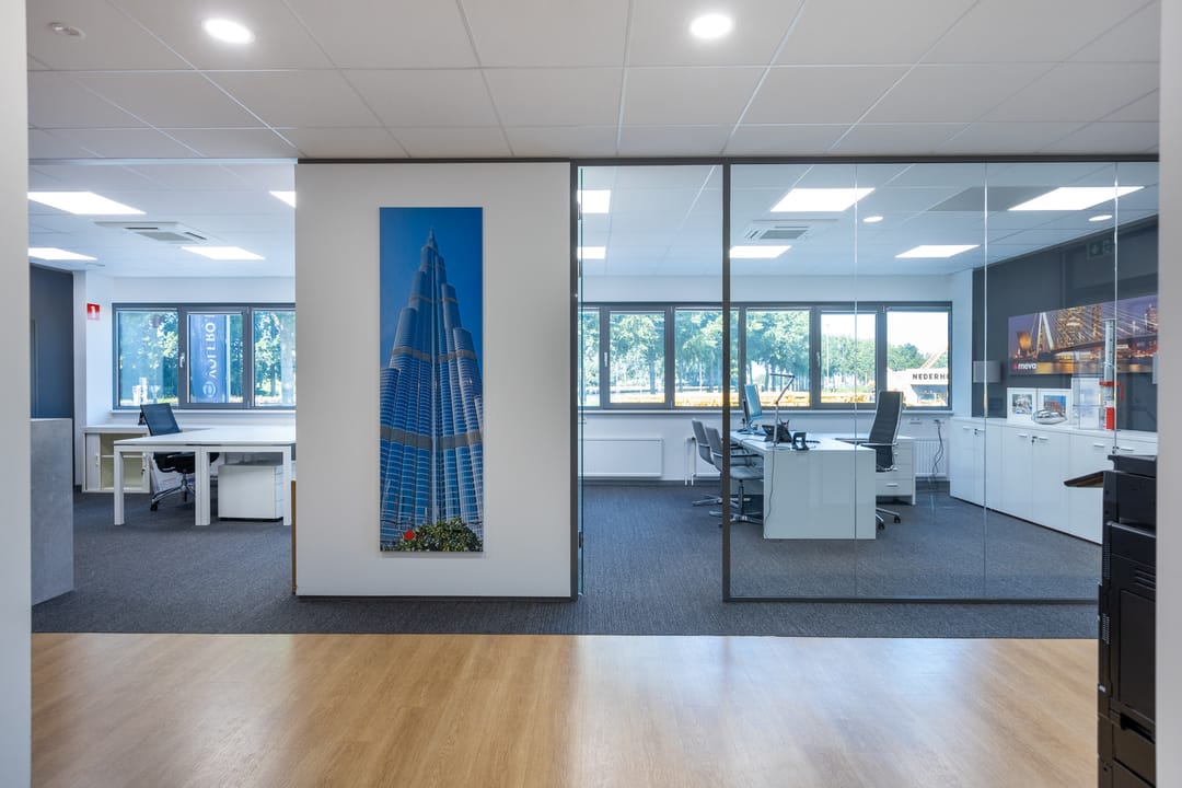 - diverse (glazen) scheidingswanden ten behoeve van afgesloten vergader- en kantoorruimten;