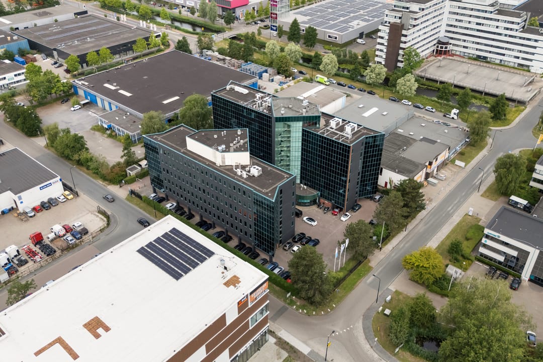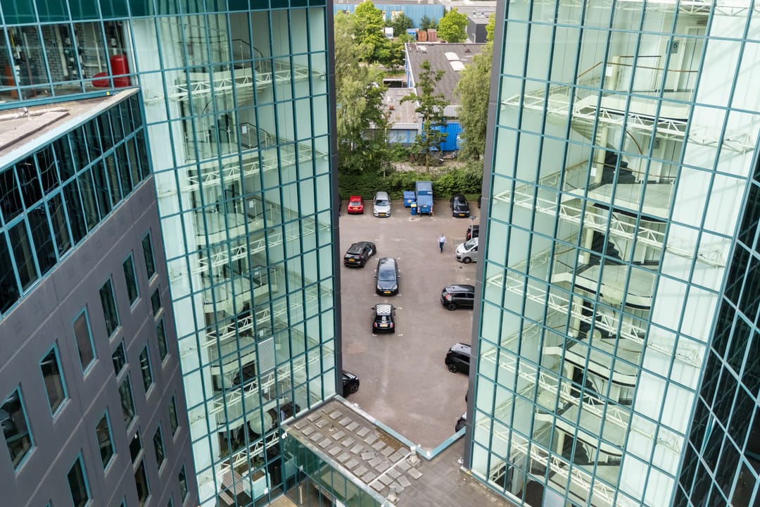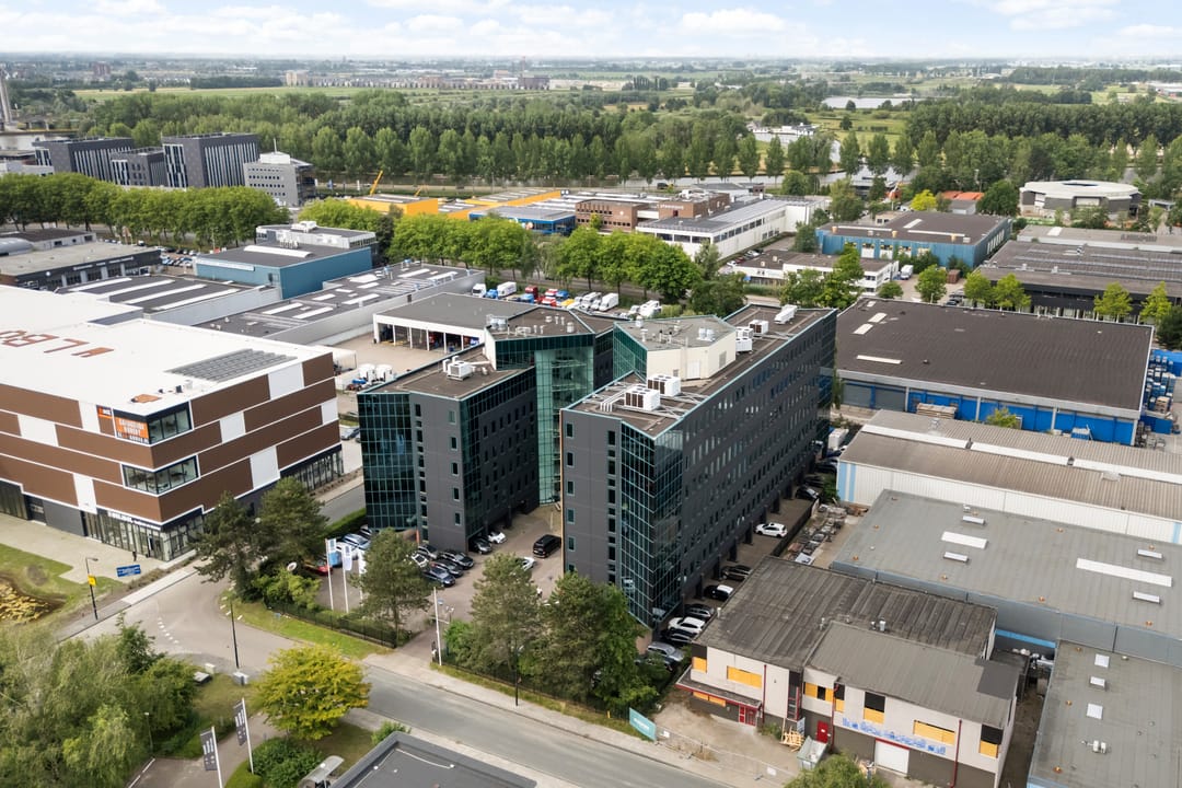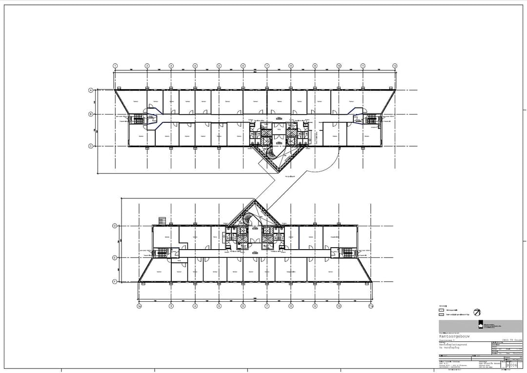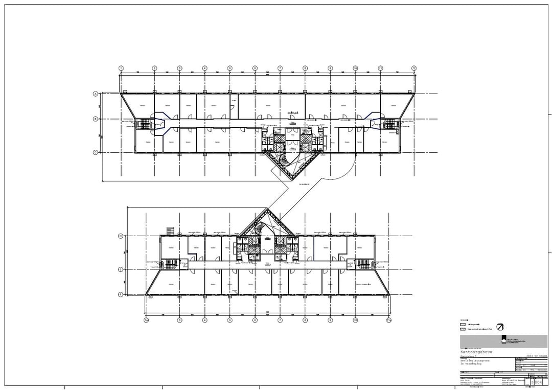 Kantoorgebouw Stavorenweg 3 te Gouda, bestaande uit 2 gespiegelde losstaande gebouwen van totaal 7.151 m² v.v.o. kantoorruimte en 160 parkeerplaatsen.