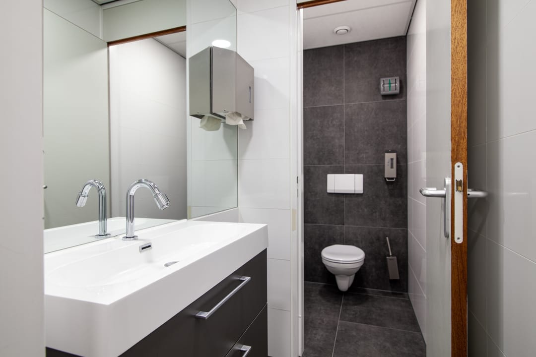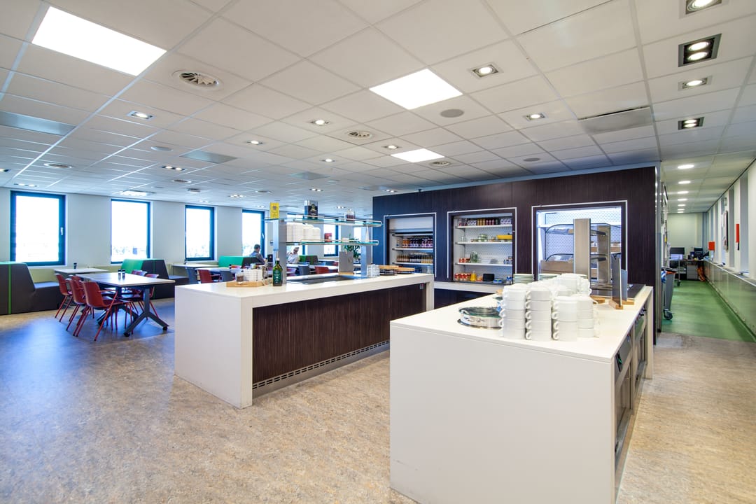 De oplevering van het gehuurde zal geschieden in de huidige, reeds gerenoveerde, staat. De kantoorruimte is onder meer voorzien van: