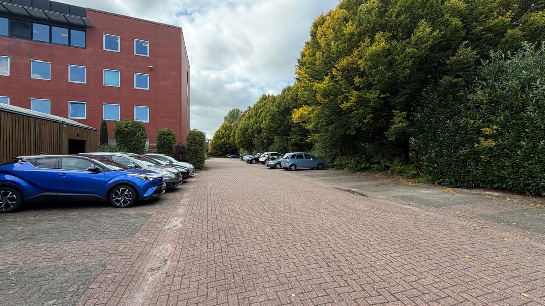 Op eigen terrein zijn voldoende parkeerplaatsen beschikbaar. De parkeernorm is 1:32 m² v.v.o.