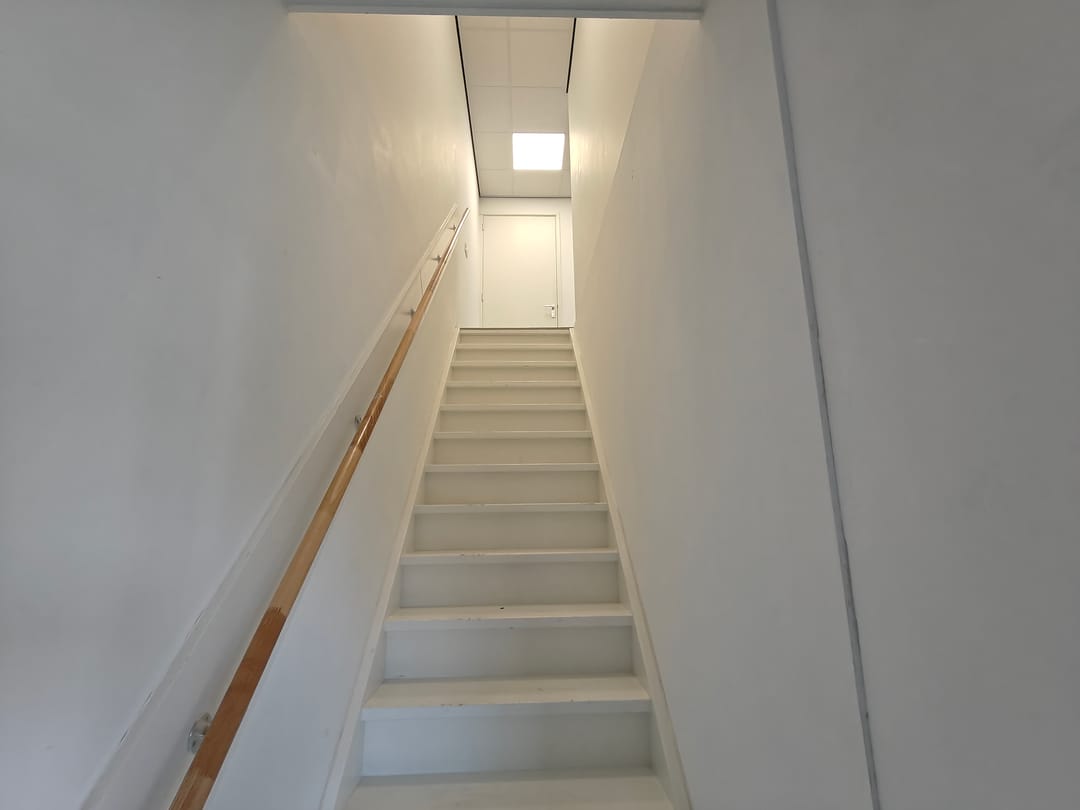 Entreedeur aan de zijkant van het object naar de gemeenschappelijke entreeruimte, vanuit hier is met een trap de eerste verdieping te bereiken. De eerste verdieping bestaat uit een grote kantoorruimte, een spreekruimte, een pantry en een toilet.