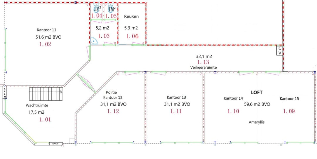 • groot 51,6 m2 BVO inclusief een evenredig aandeel in de gemeenschappelijke (verkeers)ruimten