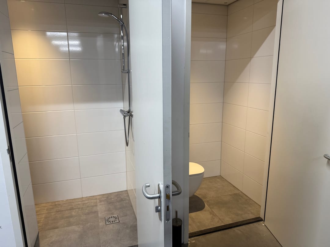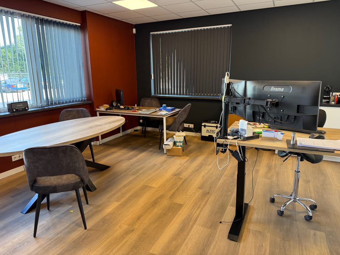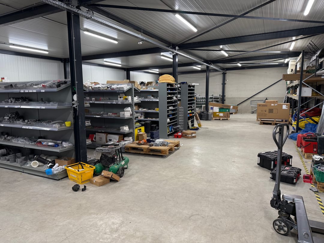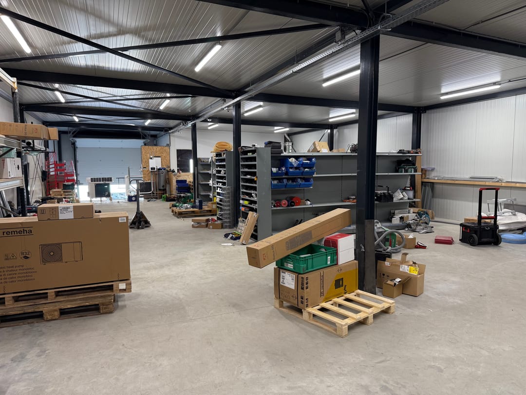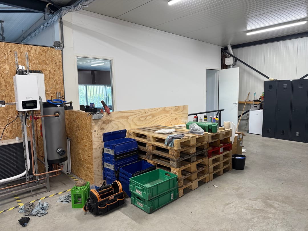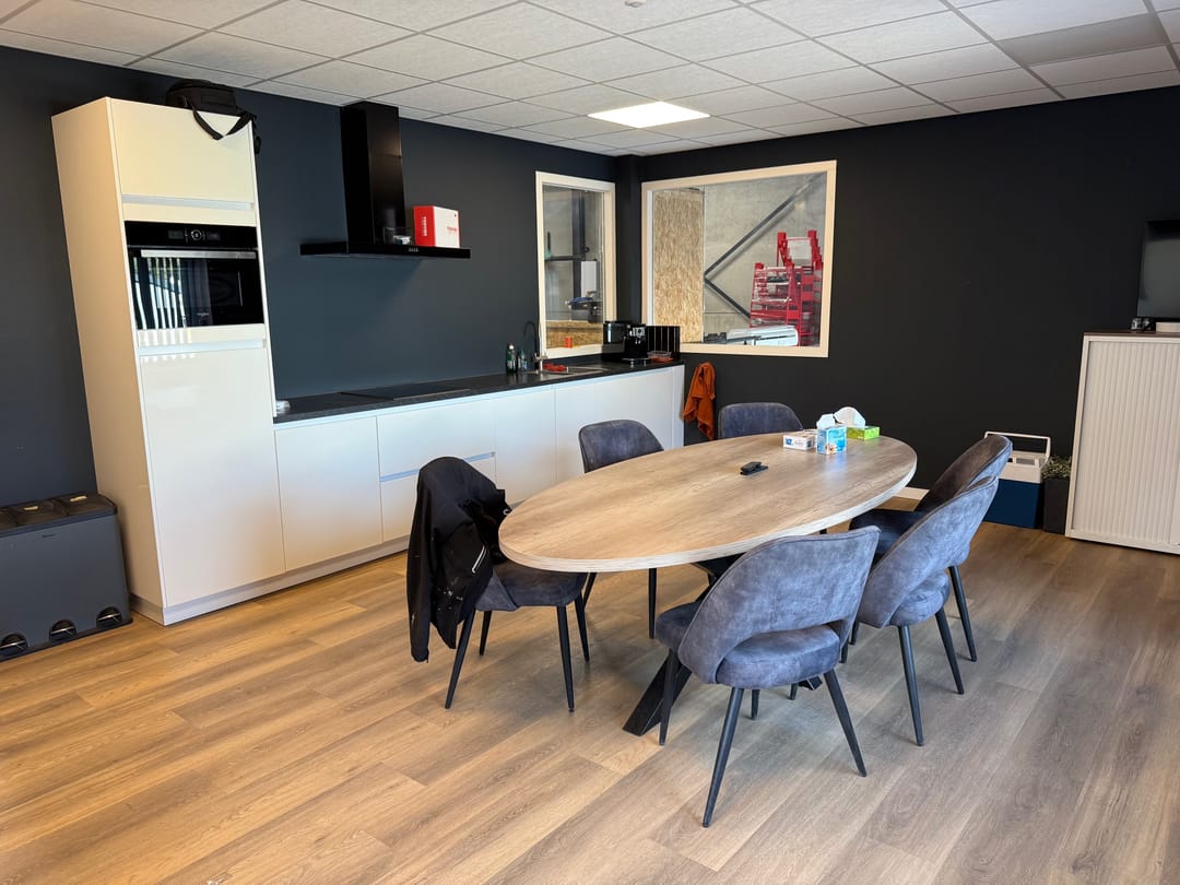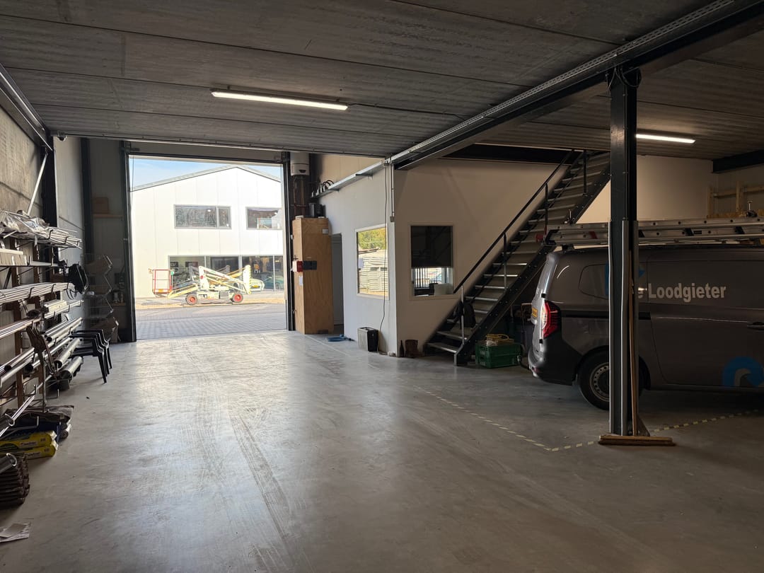 Op een nieuw kleinschalig bedrijventerrein langs de Helvoirtseweg gelegen representatief en zeer compleet uitgevoerd bedrijfsobject, totaal groot circa 525m2 bestaande uit 245m2 bedrijfsruimte begane grond met elektrisch bedienbare overheaddeur, 220m2 bedrijfsruimte/magazijn op de betonnen verdieping, 30m2 kantoorruimte begane grond, toilet en douche en 30m2 kantoorruimte/kantine op de verdieping met complete keukeninrichting.