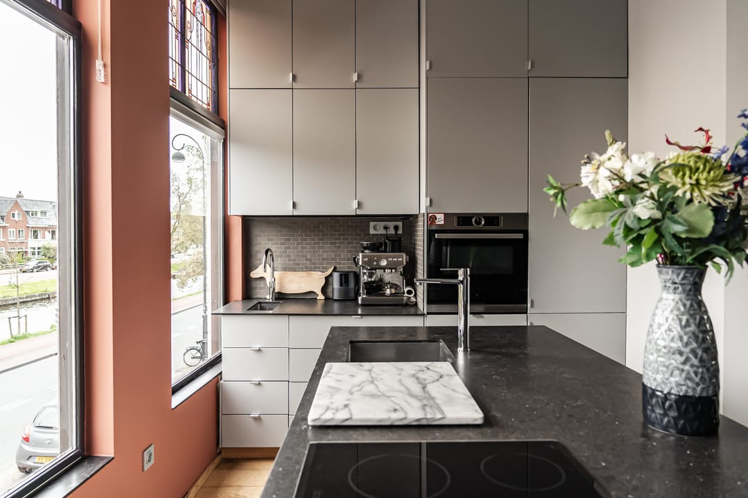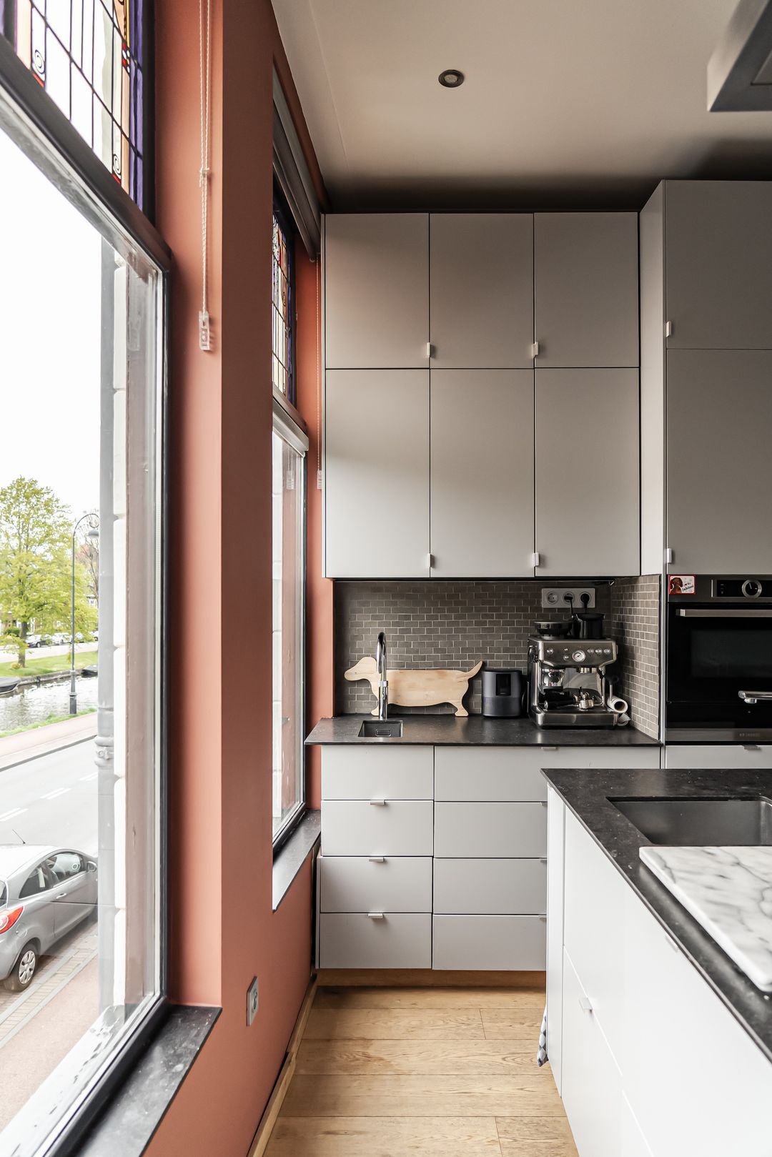 Een prachtig, vrij uitzicht op de singel aan de voorzijde, een heerlijk balkon aan de achterzijde,; hier wil je absoluut wonen en werken.