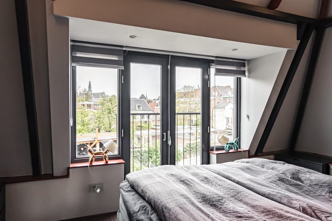 Tweede etage: Overloop met vaste kasten, toilet met fontein, slaapkamer voorzijde met dakkapel, kast met wasmachineaansluiting en plaats voor een droger, badkamer met douche en wastafel met meubel, twee vaste kasten. De tweede slaapkamer is gesitueerd aan de achterzijde en beschikt over een open badkamer met ligbad, inloopdouche en wastafel met meubel. Vaste badkamerkast en vaste ladekasten langs de wanden. Frans balkon met openslaande deuren en zicht op het dakterras en de Bavo. Tevens door daklichten veel natuurlijk licht in de ruimte. Beide slaapkamers zijn voorzien van airco. De gehele etage is voorzien van vloerverwarming.