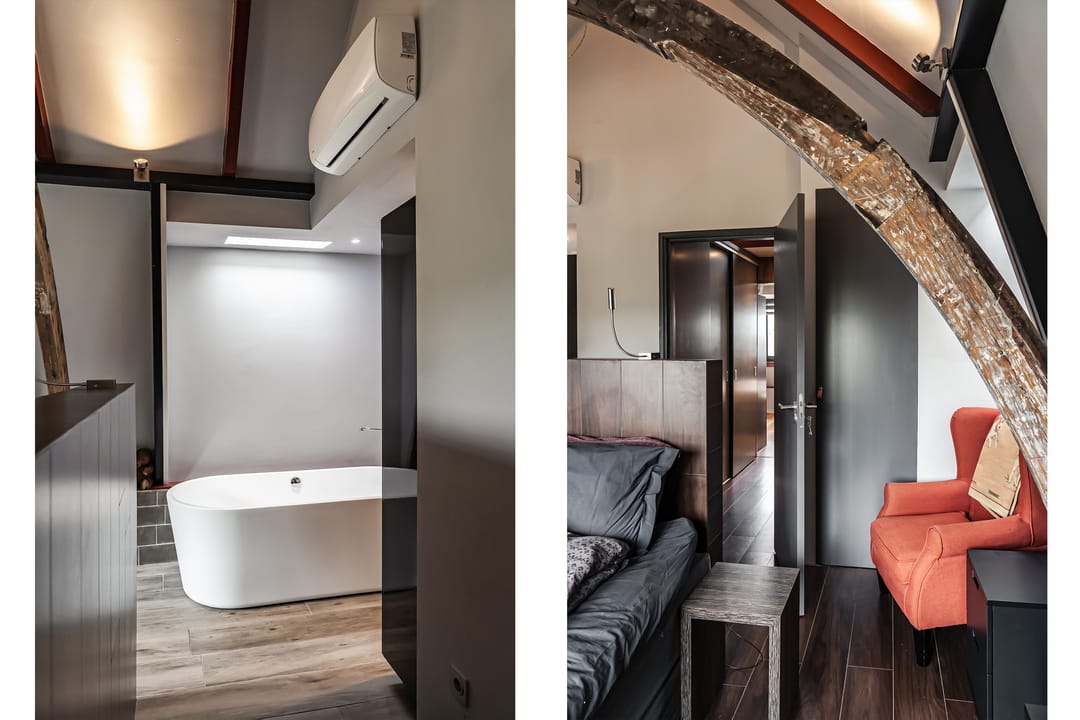 De stadswoning heeft een luxe en sfeervolle afwerking met charmante, authentieke details. Het beschikt op de eerste etage over een royale woonkamer met open keuken die toegang verleent tot het balkon met uitzicht op de Grote Bavo. Op de tweede etage bevinden zich twee slaapkamers met een luxe badkamer én een tweede badkamer.