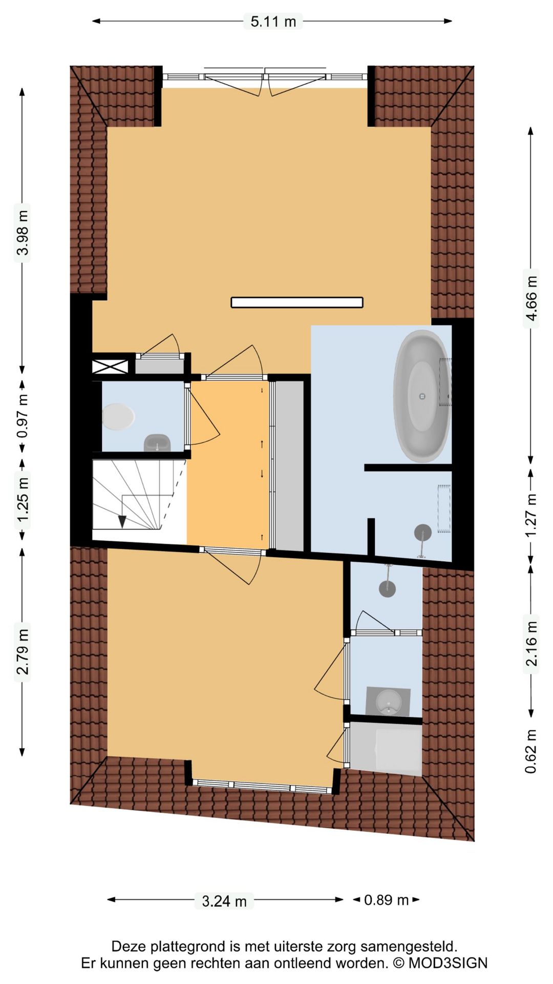 Boven de voor slaapkamer is nog een (open) vliering beschikbaar van ruim 20 m2 met twee Velux dakramen die naast frisse lucht ook zorgen voor veel daglicht op de overloop.