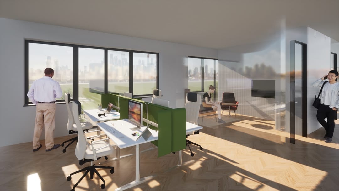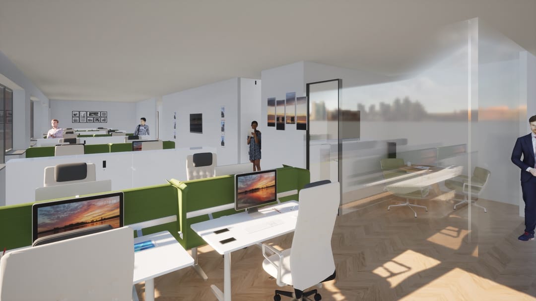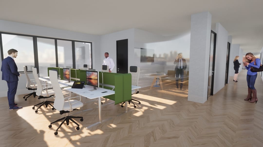 In totaal per direct 1.600 m² kantoorruimte beschikbaar;