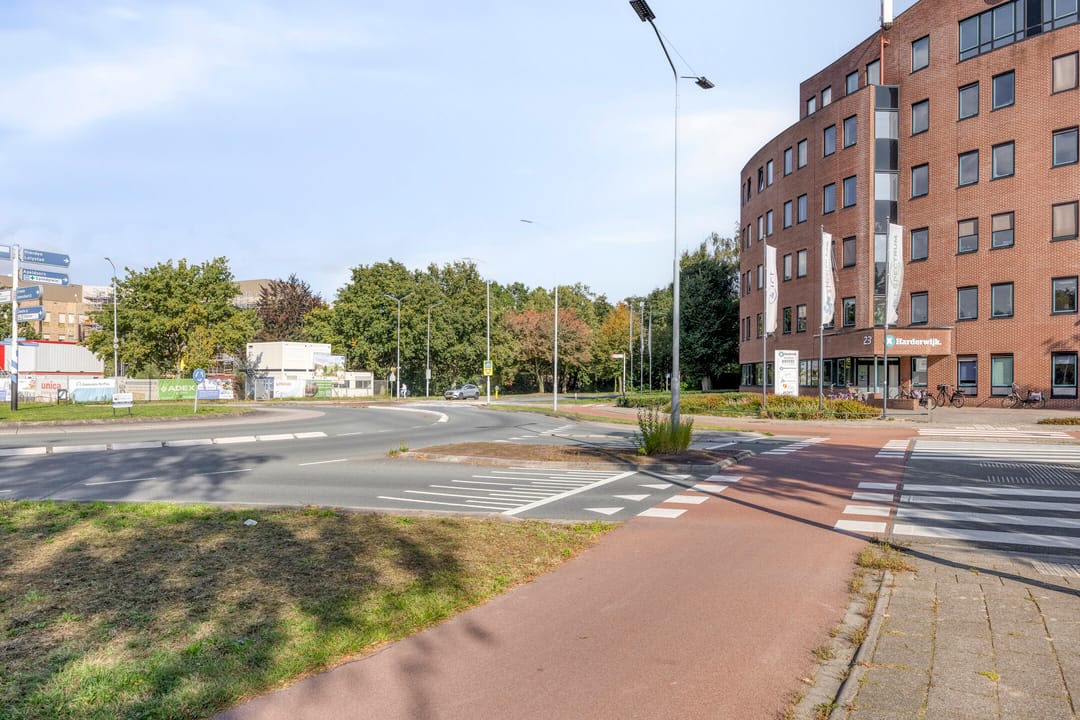 Gelegen op zichtlocatie aan een van de hoofdrotondes in Harderwijk op de kop van Businesspark Westeinde.