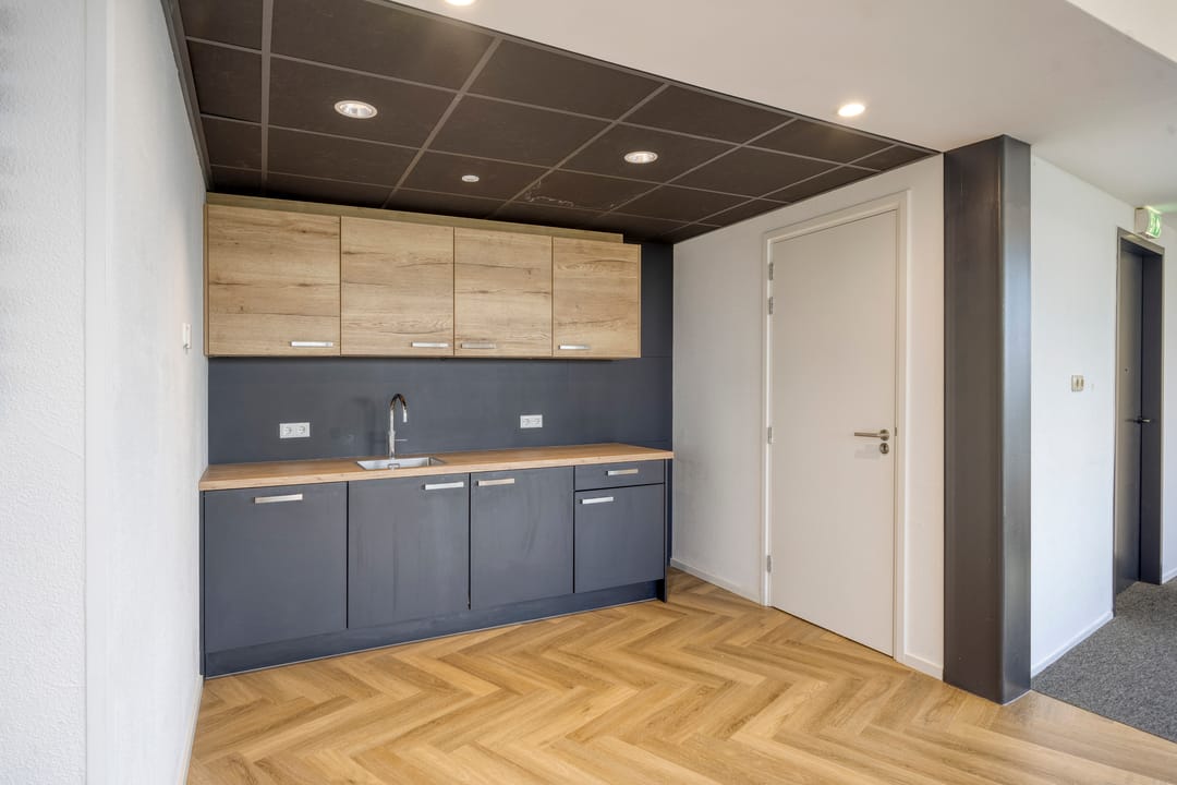 Twee jaar geleden is deze etage door de eigenaar verbouwd en gerenoveerd en is daarom voorzien van een vrijwel nieuw inbouwpakket, voorzien van alle gemakken; een eigen vergaderruimte, eigen keuken (voorzien van vaatwasser, koelkast en Quooker kraan) en sanitaire groepen op de etage.
