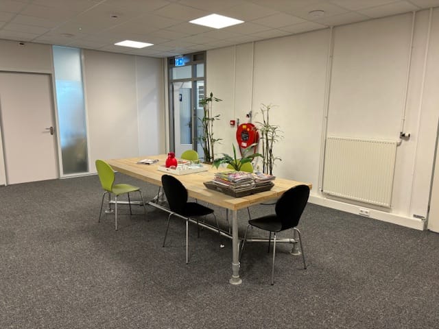 Als huurder maak je gebruik van diverse faciliteiten, waaronder een centrale entree, een comfortabele wachtruimte, verwarming via een centrale installatie, een pantry met koelkast en vaatwasser en een gezamenlijke toiletgroep.