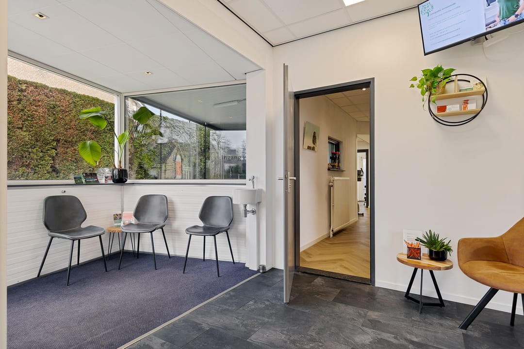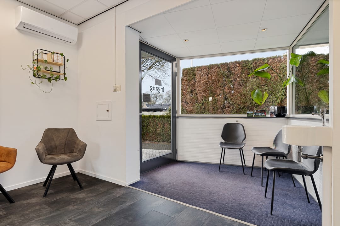 De praktijk- /kantoor-/ bedrijfs-/ multifunctionele ruimte op de begane grond, met eigen entree aan de Dr. H.A.W. van der Vechtlaan vormt een volwaardig en zelfstandig te gebruiken praktijkgedeelte van 115 m². Via de eigen entree betreed je een nette ontvangstruimte/wachtruimte met veel lichtinval, wat direct een professionele en verzorgde indruk geeft.